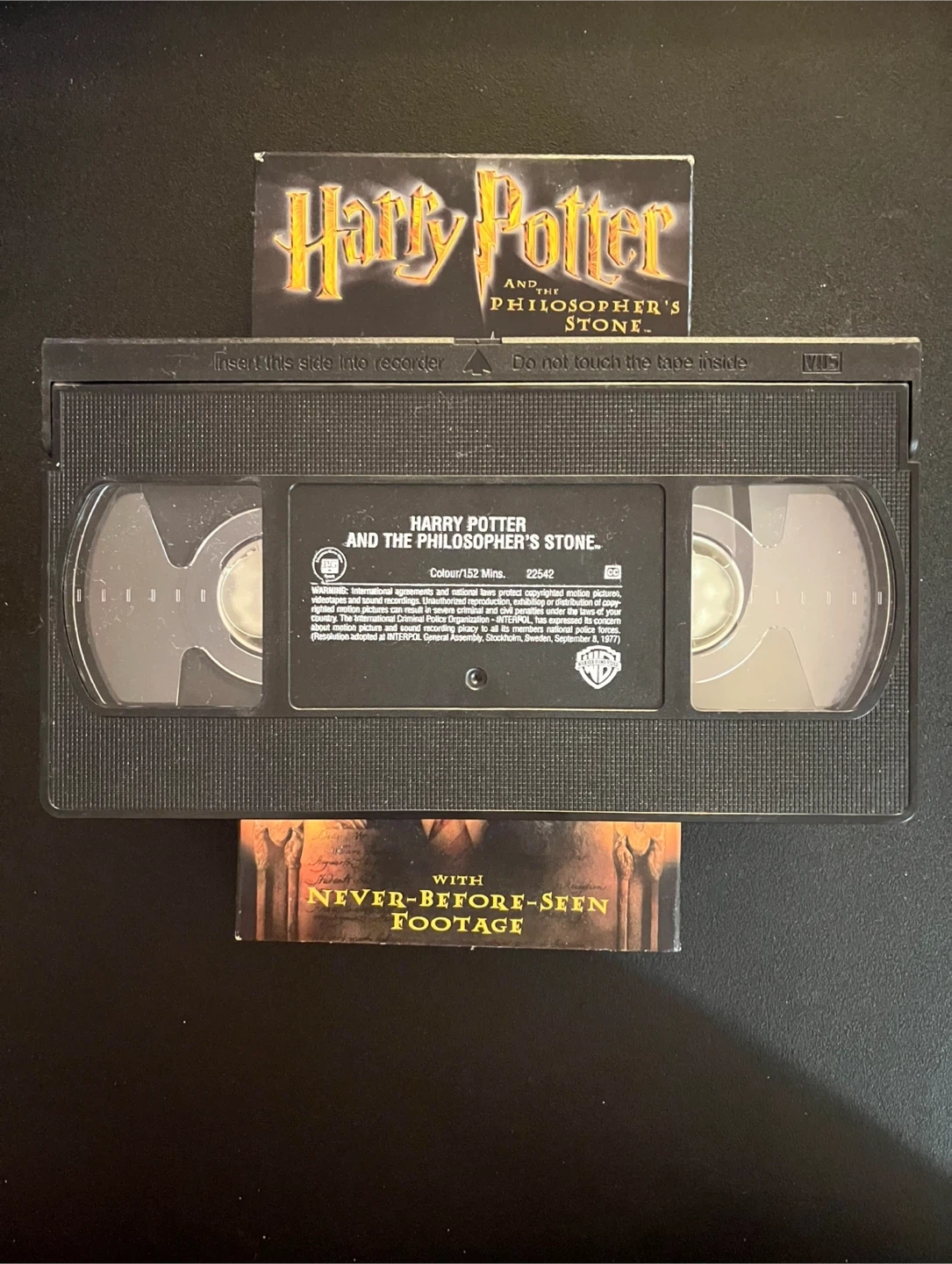 This is the VHS tape for Harry Potter and the Philosopher's Stone. It runs for 152 minutes. It includes never-before-seen footage. This is a great find for any Harry Potter fan!