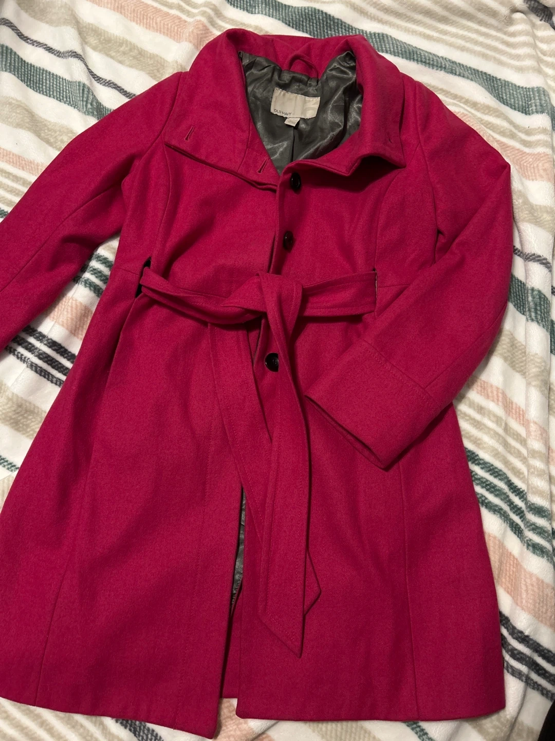 Old Navy Pink Belted Wool Blend Coat
