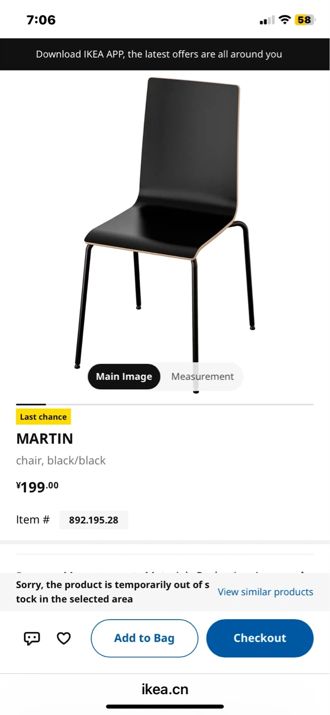 This is a set of two IKEA MARTIN chairs in black. They have a simple, modern design suitable for dining or as accent chairs. The seat and back are black with a natural wood veneer frame. Like new. Stackable. (Originally $199, see pic #3). $100 for both.