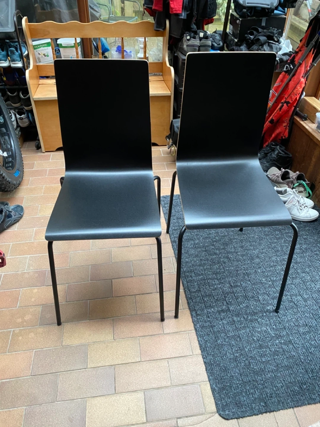 This is a set of two IKEA MARTIN chairs in black. They have a simple, modern design suitable for dining or as accent chairs. The seat and back are black with a natural wood veneer frame. Like new. Stackable. (Originally $199, see pic #3). $100 for both.