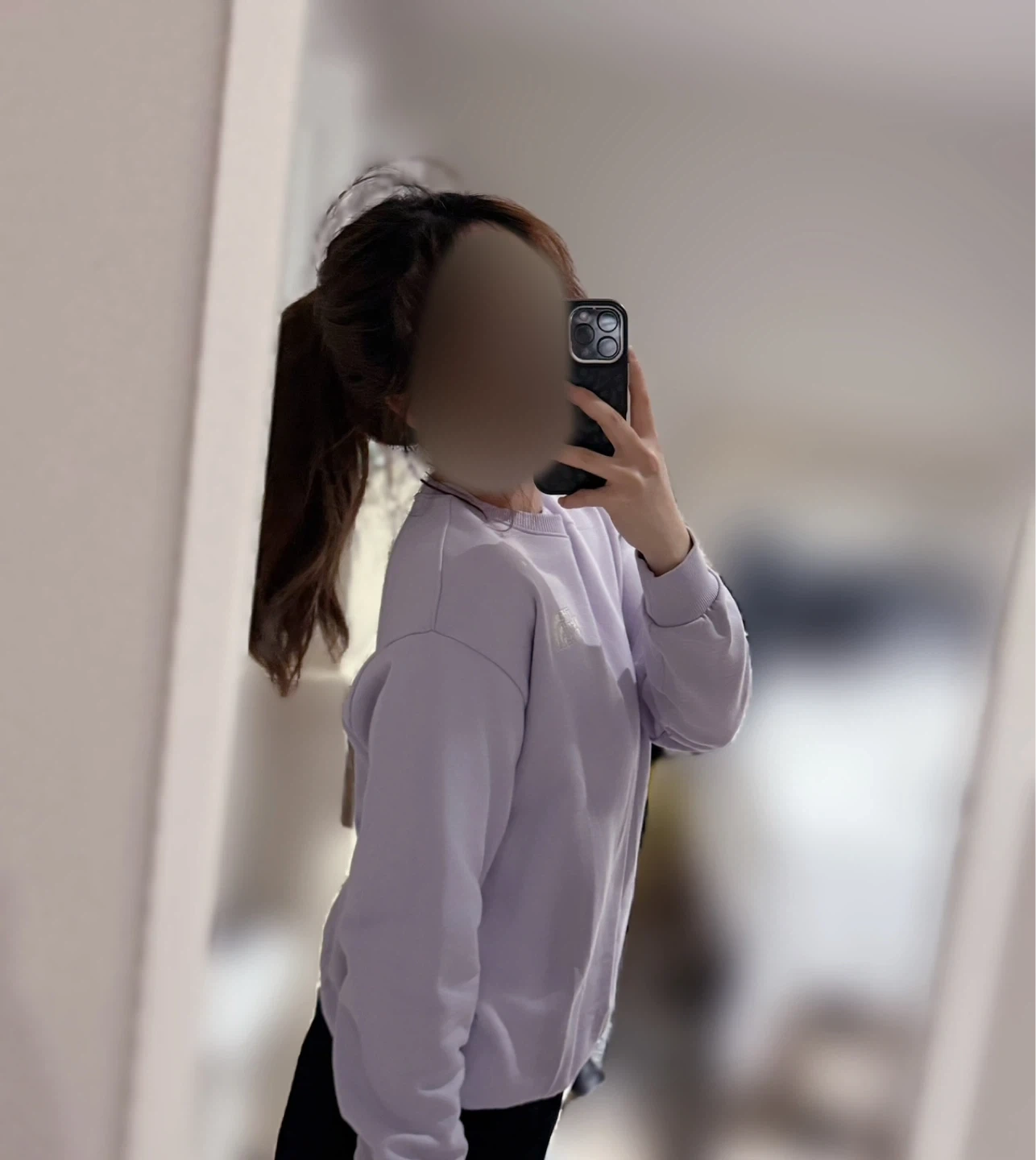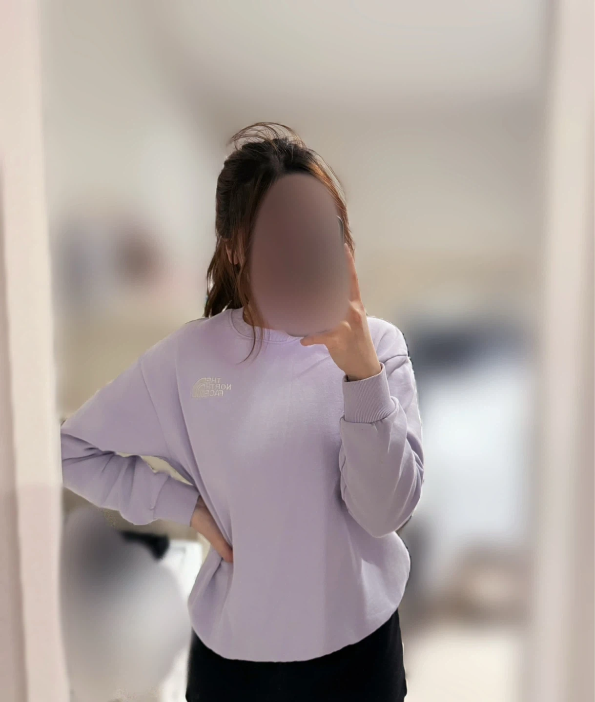 This is a light purple crewneck sweatshirt from The North Face. It's made of a soft, comfortable fabric perfect for everyday wear. Great for layering on cooler days!