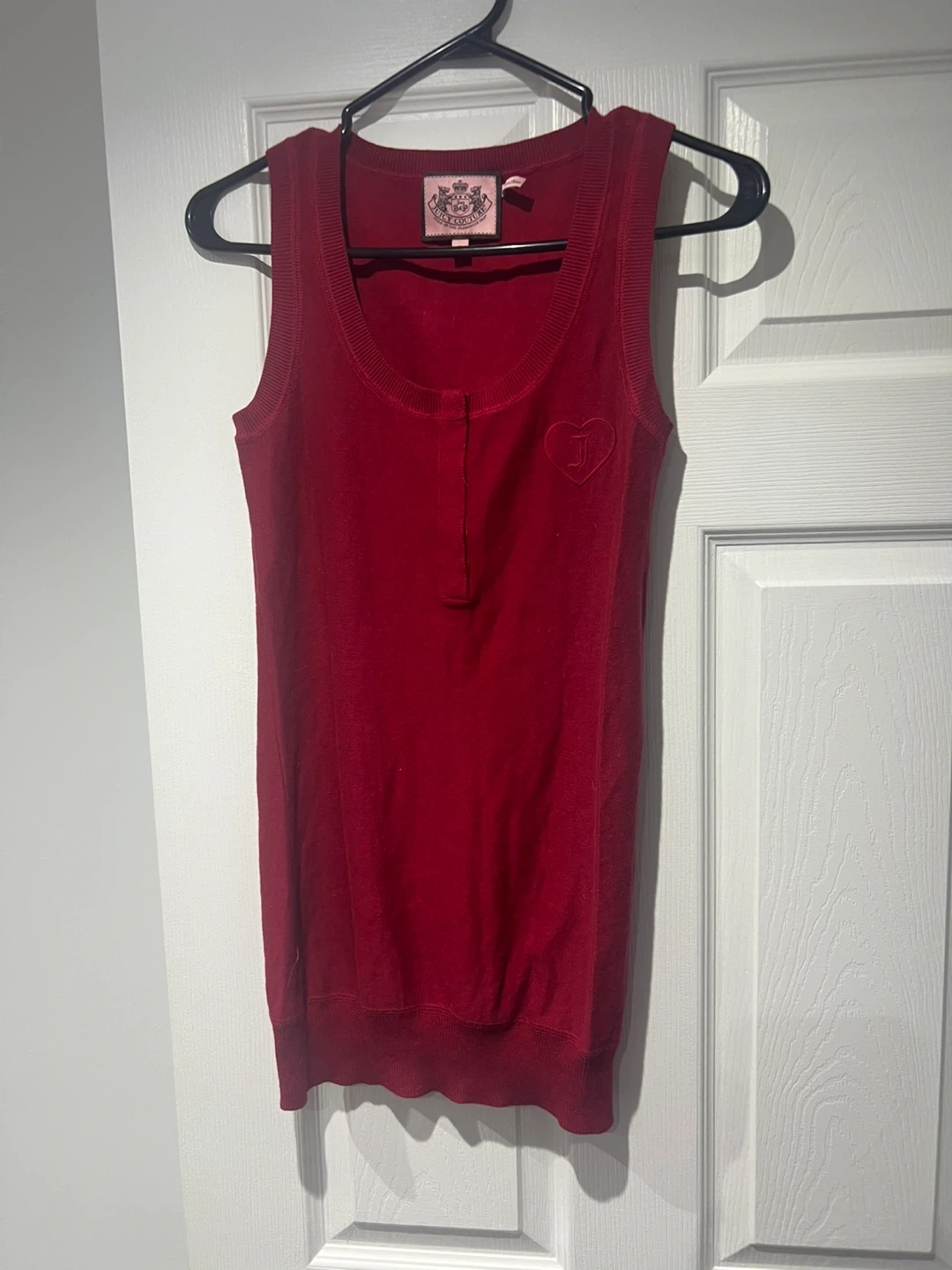 Selling a cute red sweater from Juicy Couture! It's a size P and made of 100% cotton. Features a heart detail with the Juicy Couture logo. Perfect for layering or wearing on its own!