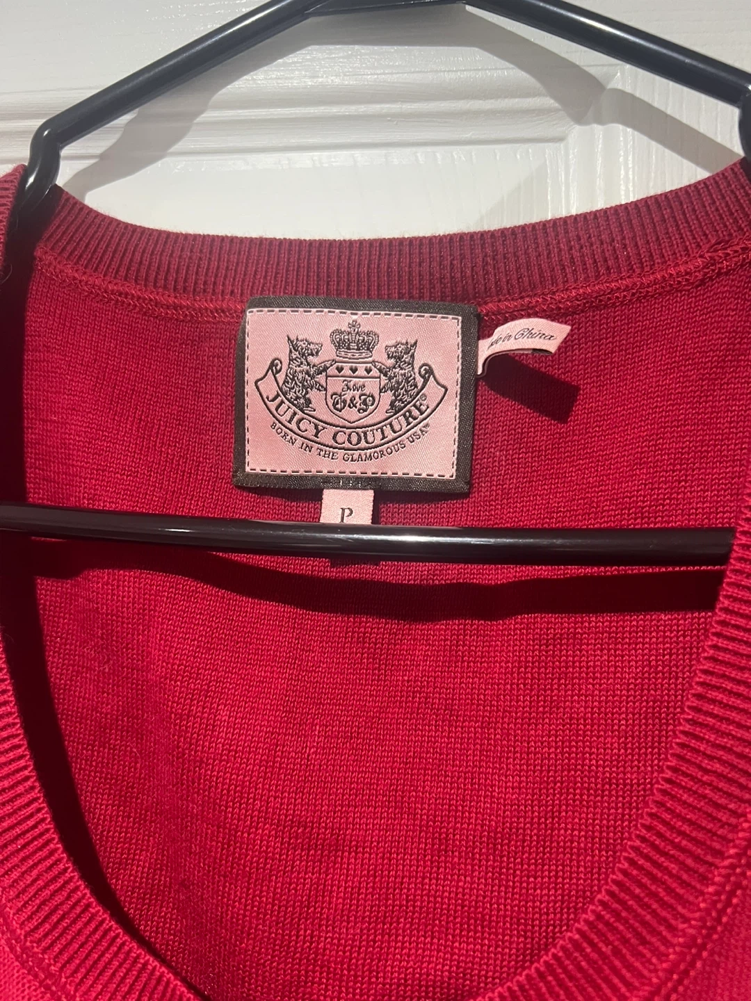 Selling a cute red sweater from Juicy Couture! It's a size P and made of 100% cotton. Features a heart detail with the Juicy Couture logo. Perfect for layering or wearing on its own!