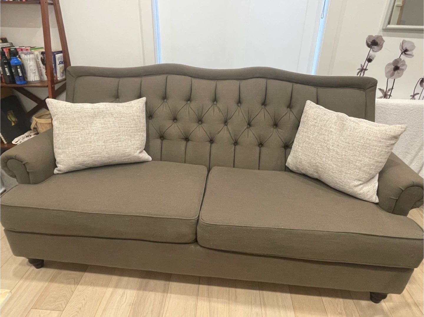 Tufted Sofa with Wooden Legs
