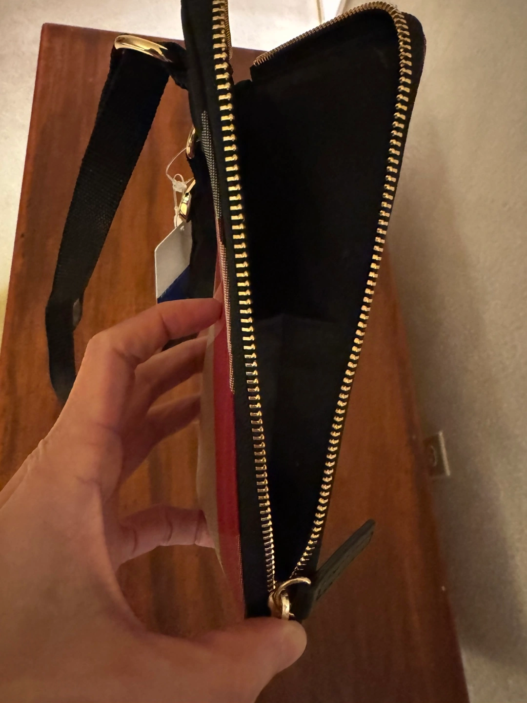 New with tags. Red and black plaid pattern. Black strap. Zip closure. Small crossbody phone case.
