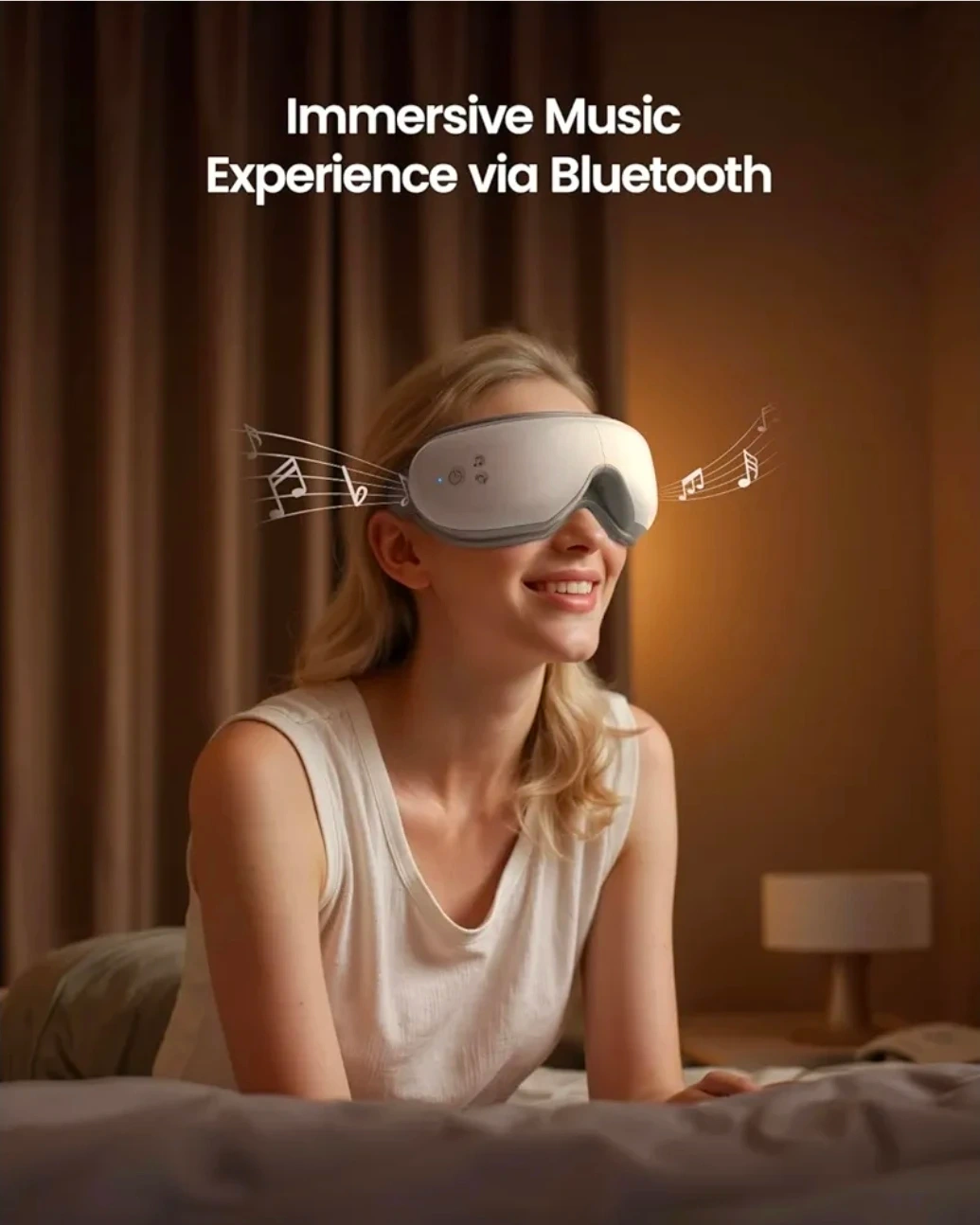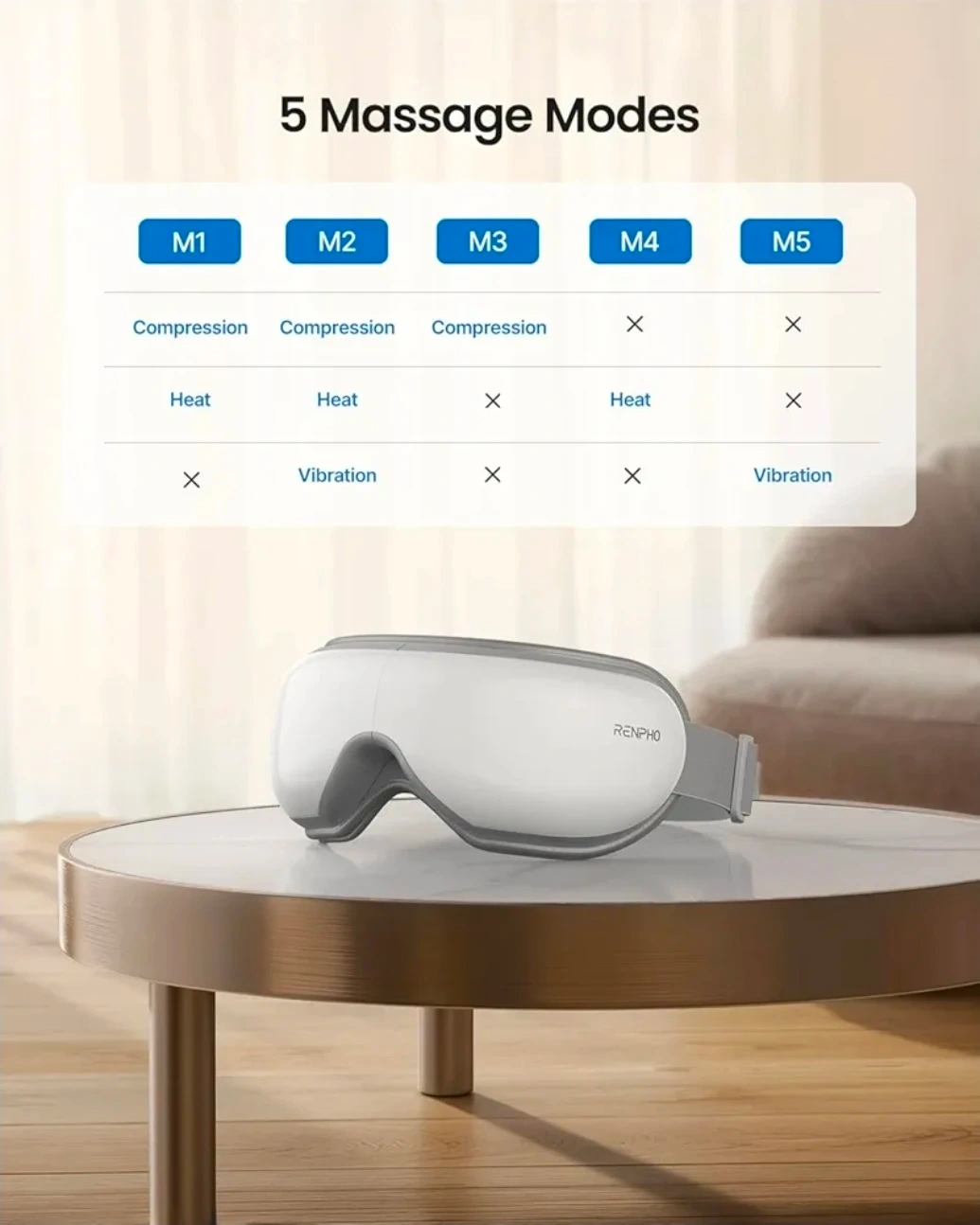 This RENPHO eye massager offers 2 compression and heat comfort levels to soothe muscle tension around the eyes. It features easy-to-use touch buttons and a remote control for operation. Enjoy an immersive music experience via Bluetooth for relaxation. It helps maximize eye cream absorption around the contour of your eyes. This device could be useful for anyone seeking to relax and rejuvenate their eyes after a long day.