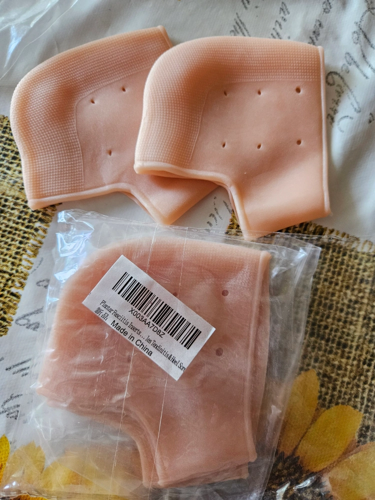 2 pairs of slip-ons. In their original packaging. These are designed to provide support and comfort for those with plantar fasciitis, tendinitis, and heel soreness.