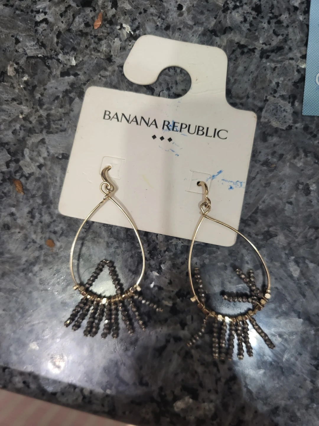 These Banana Republic Factory Store drop earrings feature a gold-tone metal hoop with beaded fringe detailing.
