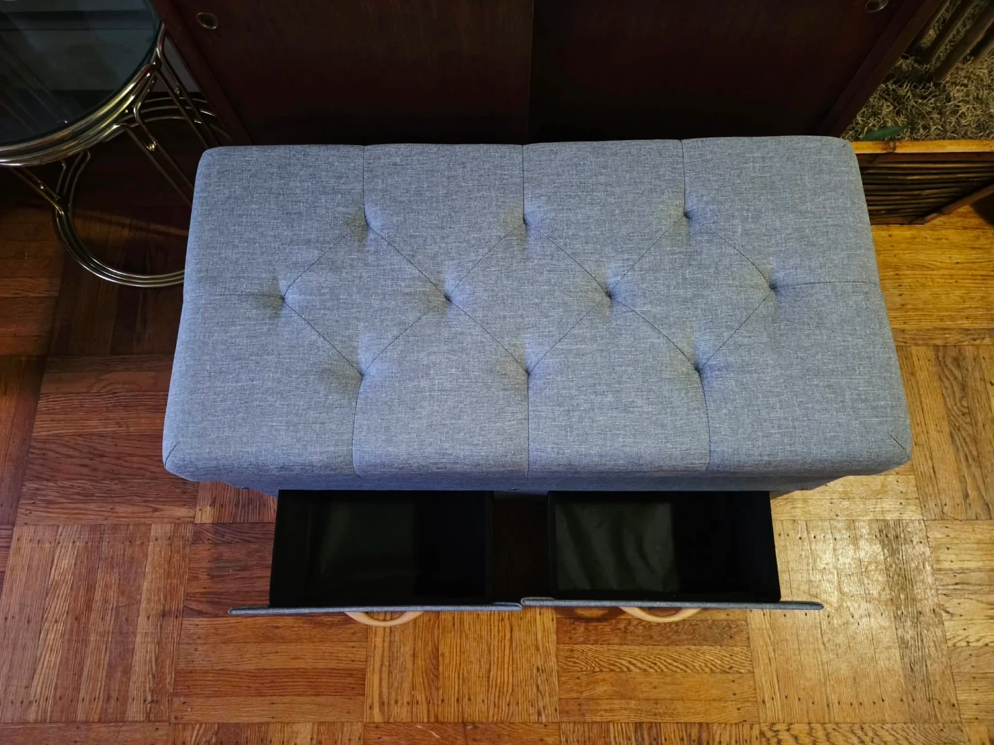 Grey Tufted Storage Bench