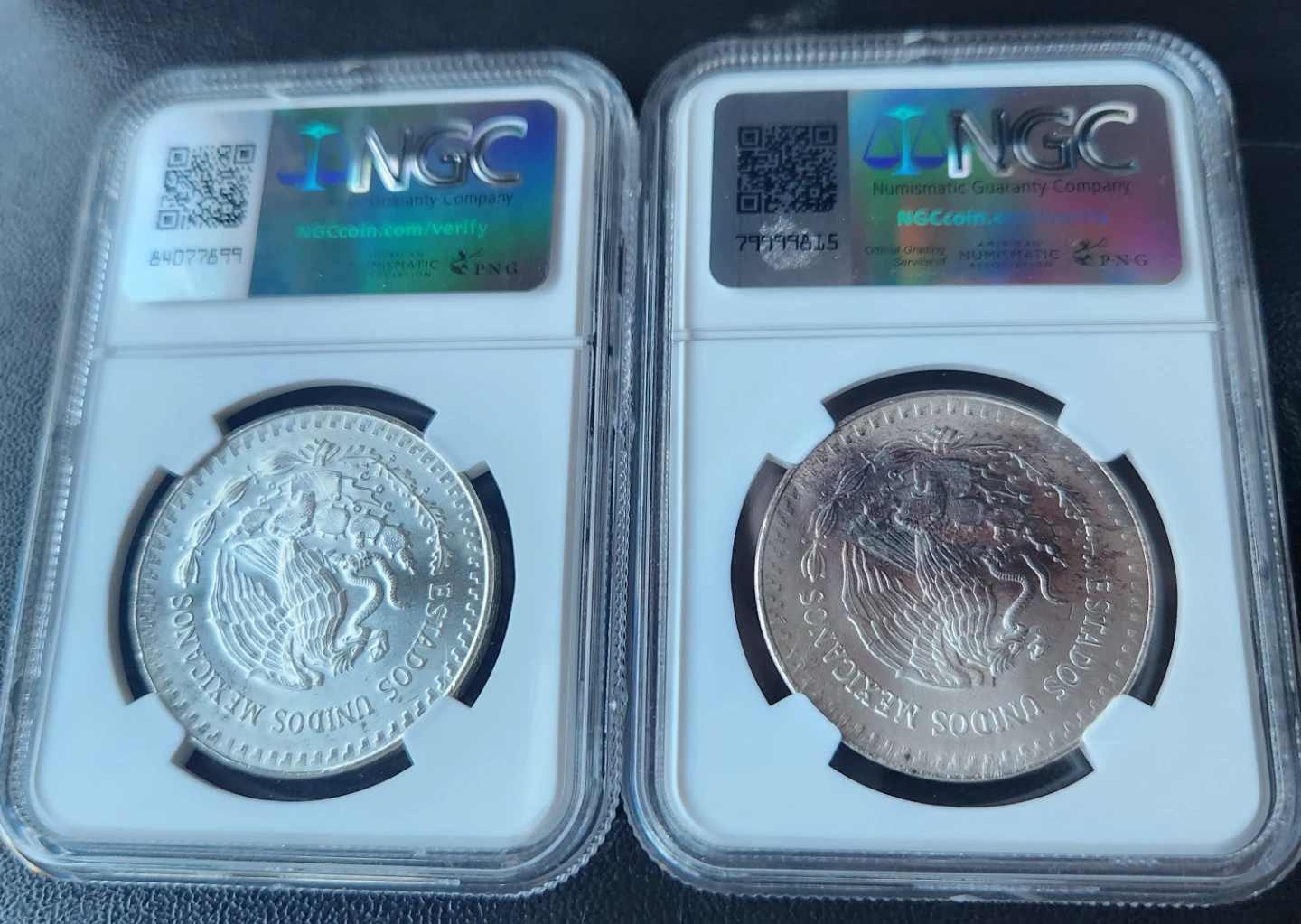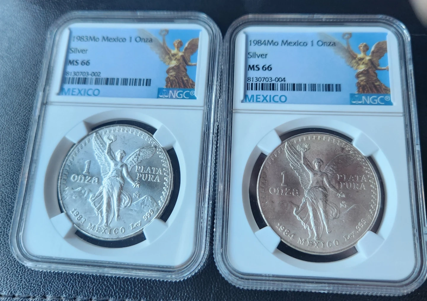 Buy & Sell1983 & 1984 Mexico 1 Onza Silver Coins NGC MS 661983 & 1984 Mexico 1 Onza Silver Coins NGC MS 66$360Two Mexico 1 Onza silver coins, one from 1983 and one from 1984. Both are graded MS 66 by NGC. Coins are certified and encapsulated.WHERE TO MEETsheepabay BrooklynView MapSELLERverifiedmikeSheepshead Bay923 reviews0 chats·1 favorites·16 viewsSEND CHAT TO SELLERHi mike! I’m interested in your listing.Hi mike! I’m interested in your listing.Get the Karrot app to chatSign In to chat