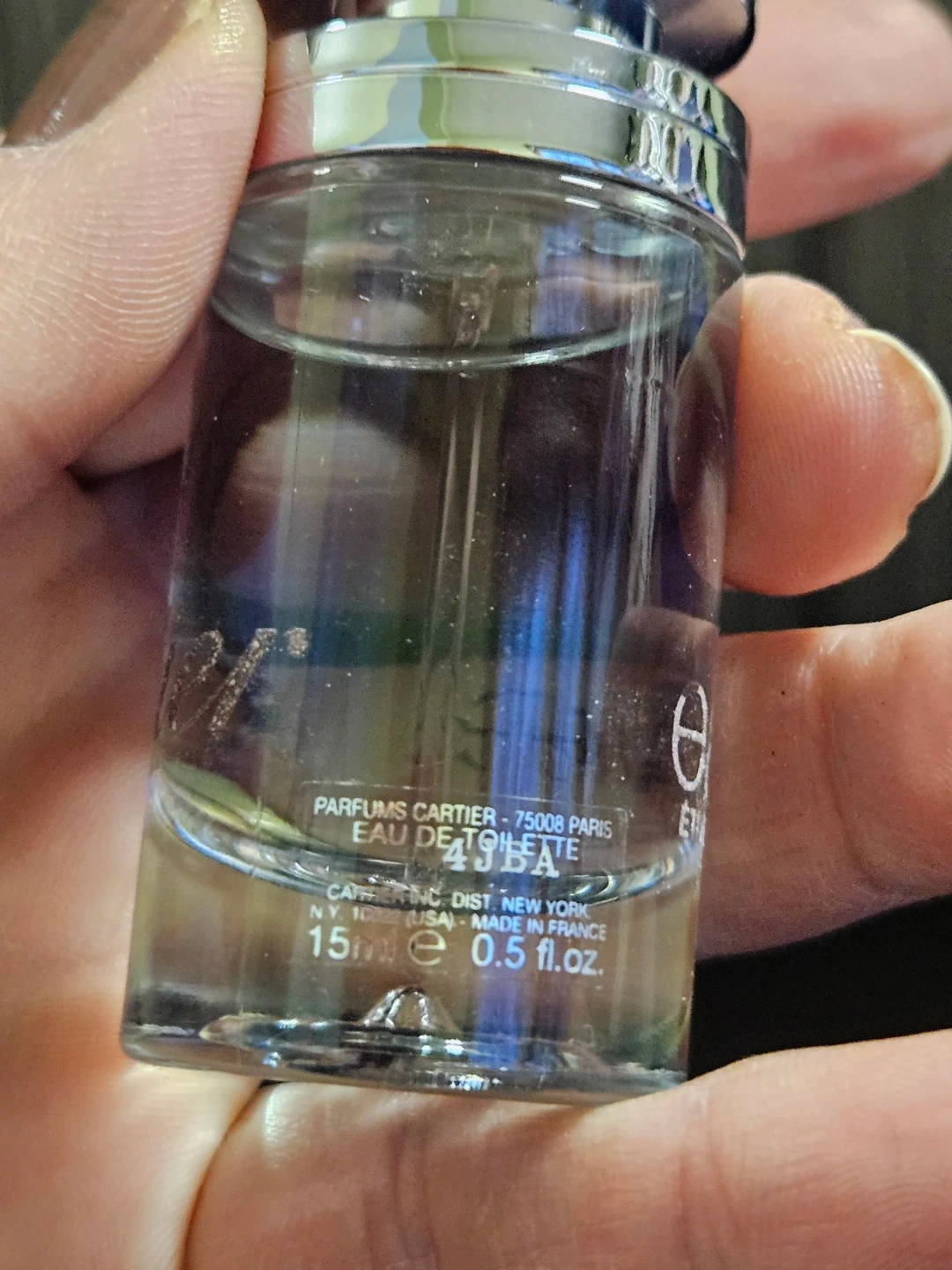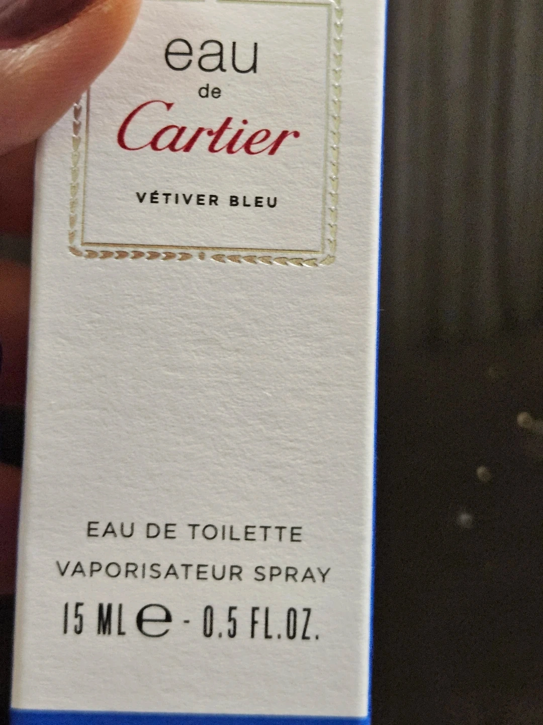 Selling a bottle of Eau de Cartier Vétiver Bleu. This is an eau de toilette vaporisateur spray. The bottle contains 15ml (0.5 fl.oz). Comes with the original box!