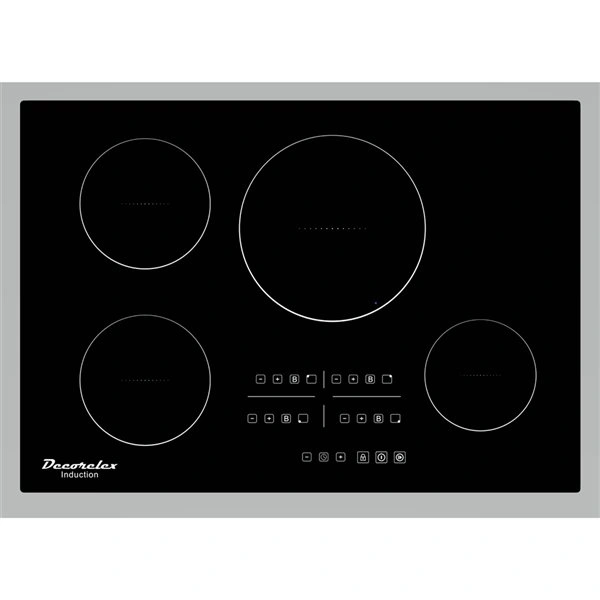 The Decorelex 30" induction cooktop is a beautiful combination of cooking and modern design. It's glossy glass finish compliments all kitchen styles and decor. In addition to a sleek clean appearance It's smooth-top surface makes cleaning convenient and simple. The high-performance induction technology makes cooking superior and faster with perfectly even heat all across your utensils. - Cool to touch the cooktop generates heat directly to the pan, not the cooktop, so spills can't burn on and less heat is lost in the cooking process. - Each heating zone has an independent 1-99 Minute countdown timer - The touch sensor controls eliminate the need for large knobs and keep the surface looking seamless. - Residual heat indicator to prevent any accidental burns. - Automatic pan recognition and even heat eliminate hot spots and delivers consistent results for creating delicious, evenly cooked foods like steaks and omelets. Model #DX518ICTP30