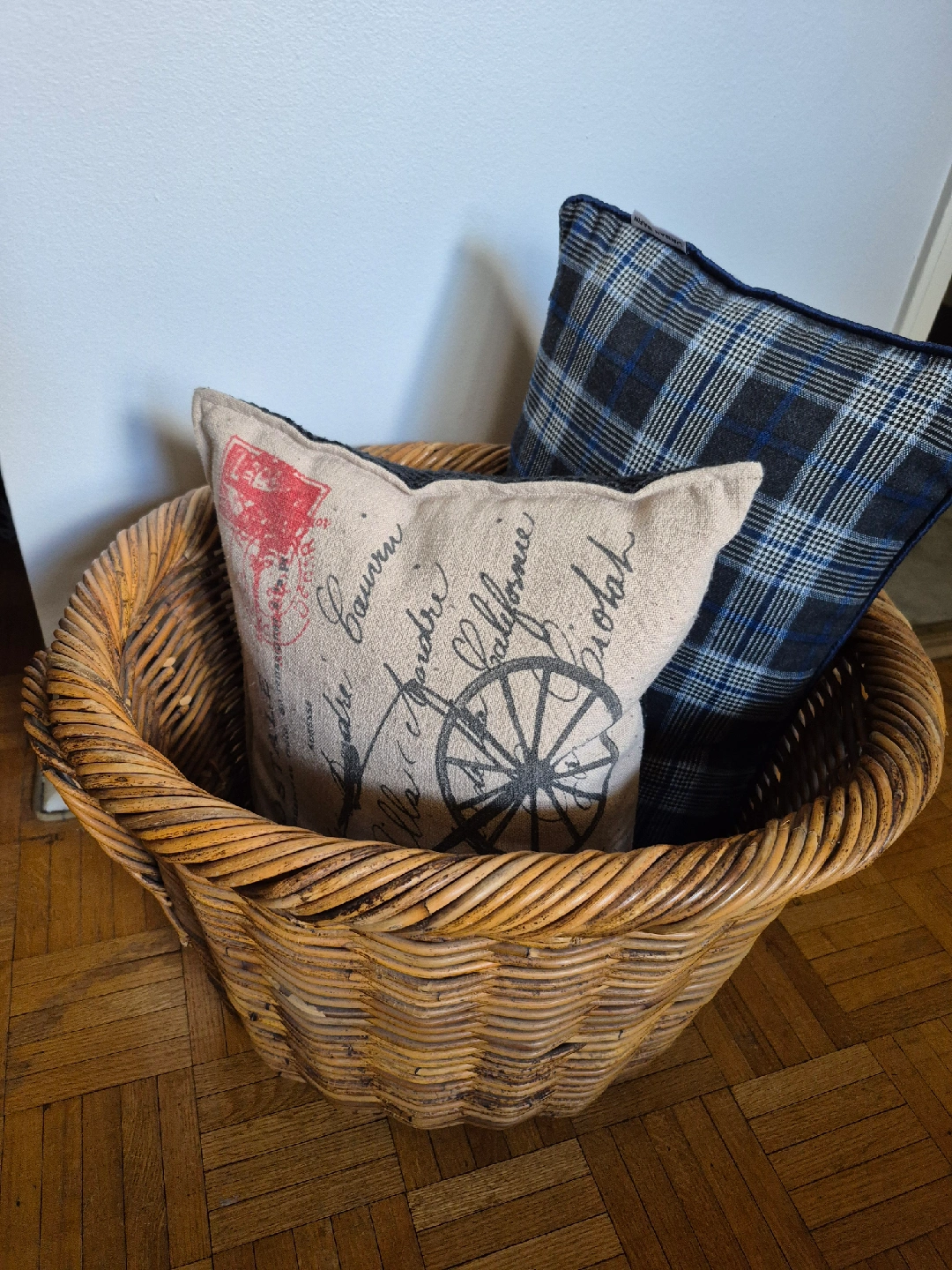Decorative basket and 2 designer pillows