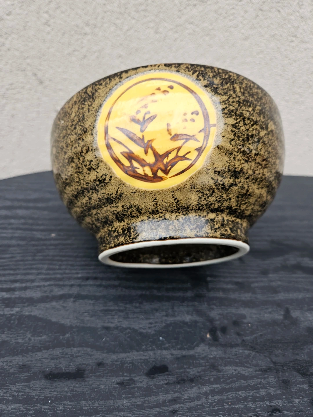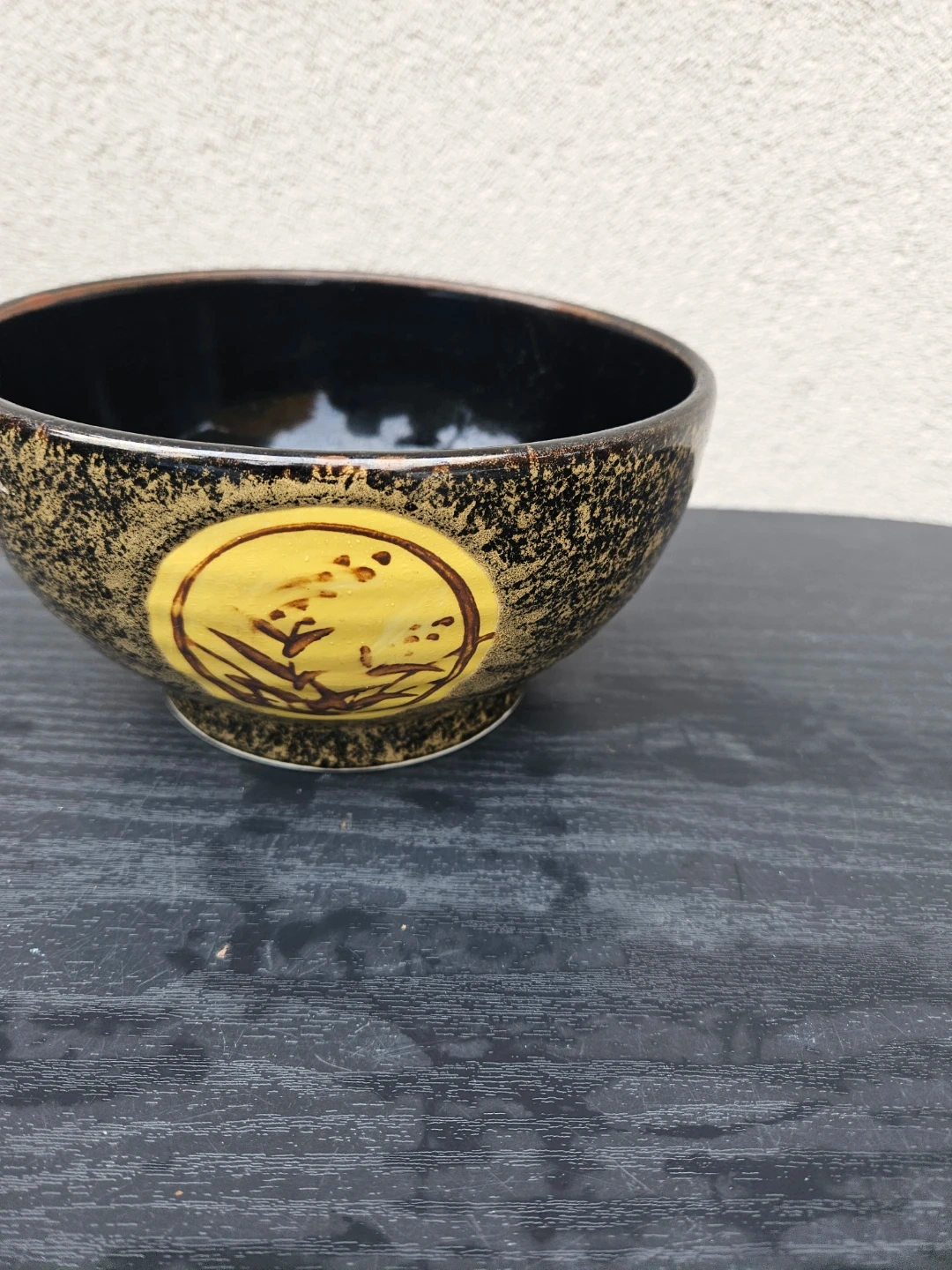 38Selling a decorative bowl featuring a unique design with black and gold accents. It's in great condition and would make a lovely addition to any home!