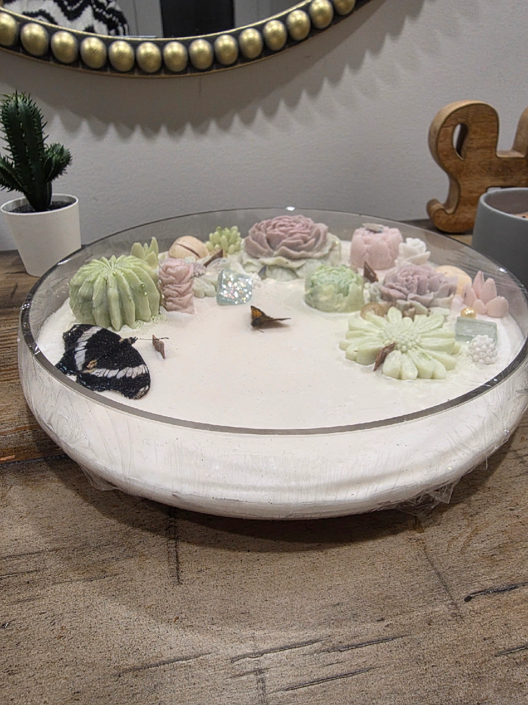 This is a decorative candle with a unique floral design. It would be a beautiful addition to any room!