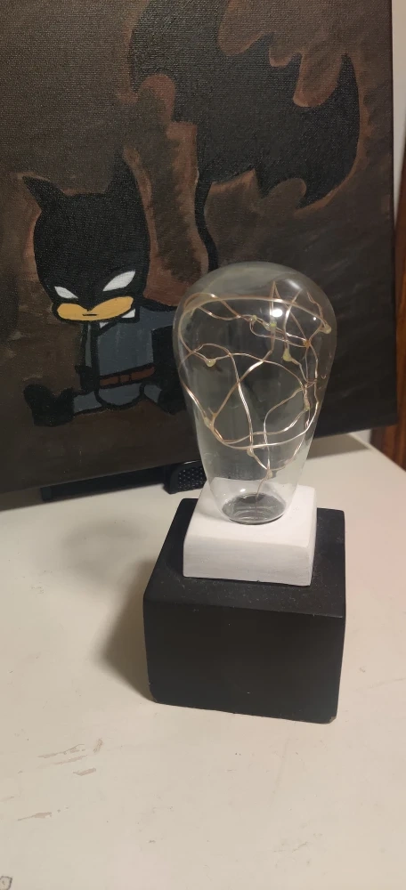 65Add a touch of whimsy to your space with this unique decorative table lamp! It features a clear glass bulb filled with delicate copper-coloured wire lights, set on a black and white base. Perfect for a bedside table or shelf for a soft, ambient glow