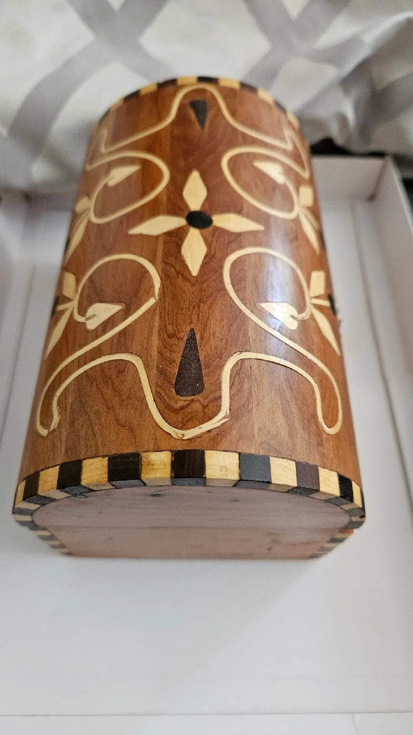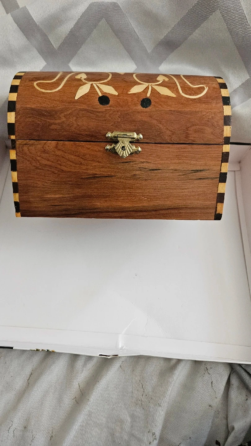 Here's a charming decorative wooden box! It features a lovely design and would be perfect for storing small treasures or adding a touch of rustic elegance to your home decor