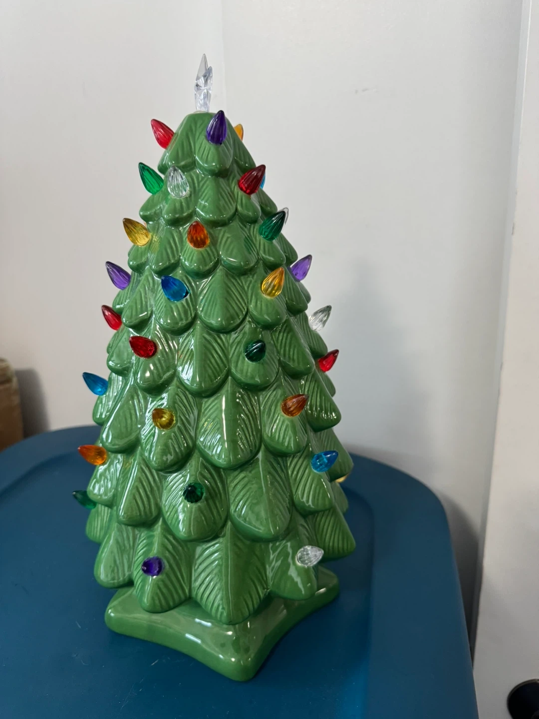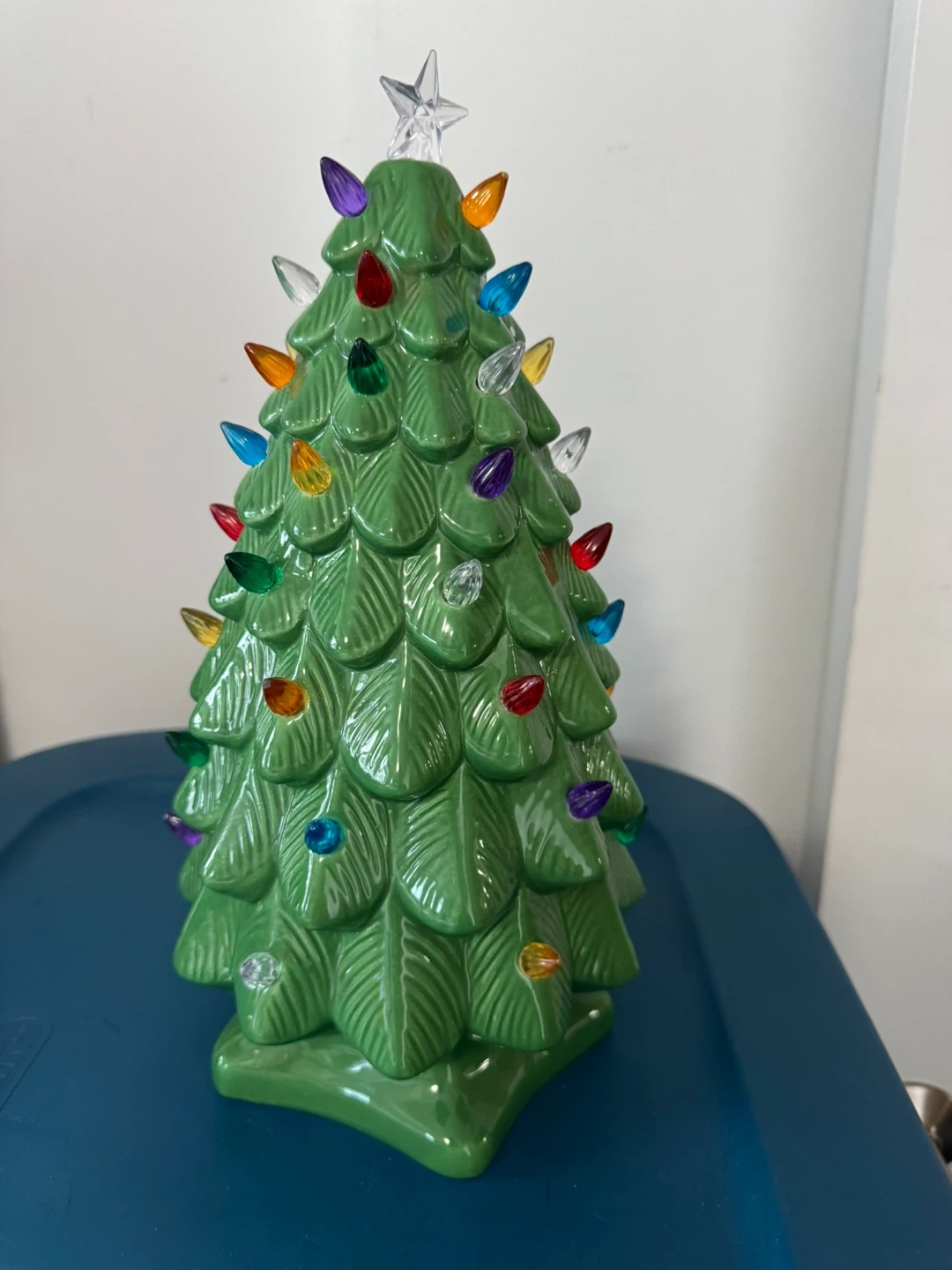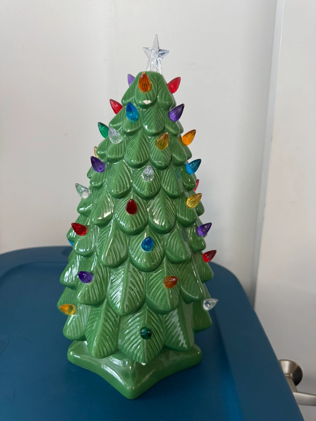 1000+Decorative Light Up Christmas Tree Working Has a tiny chip please see photos $15 Pick up in the lobby of my condo located in Scarborough at Finch and McCowan