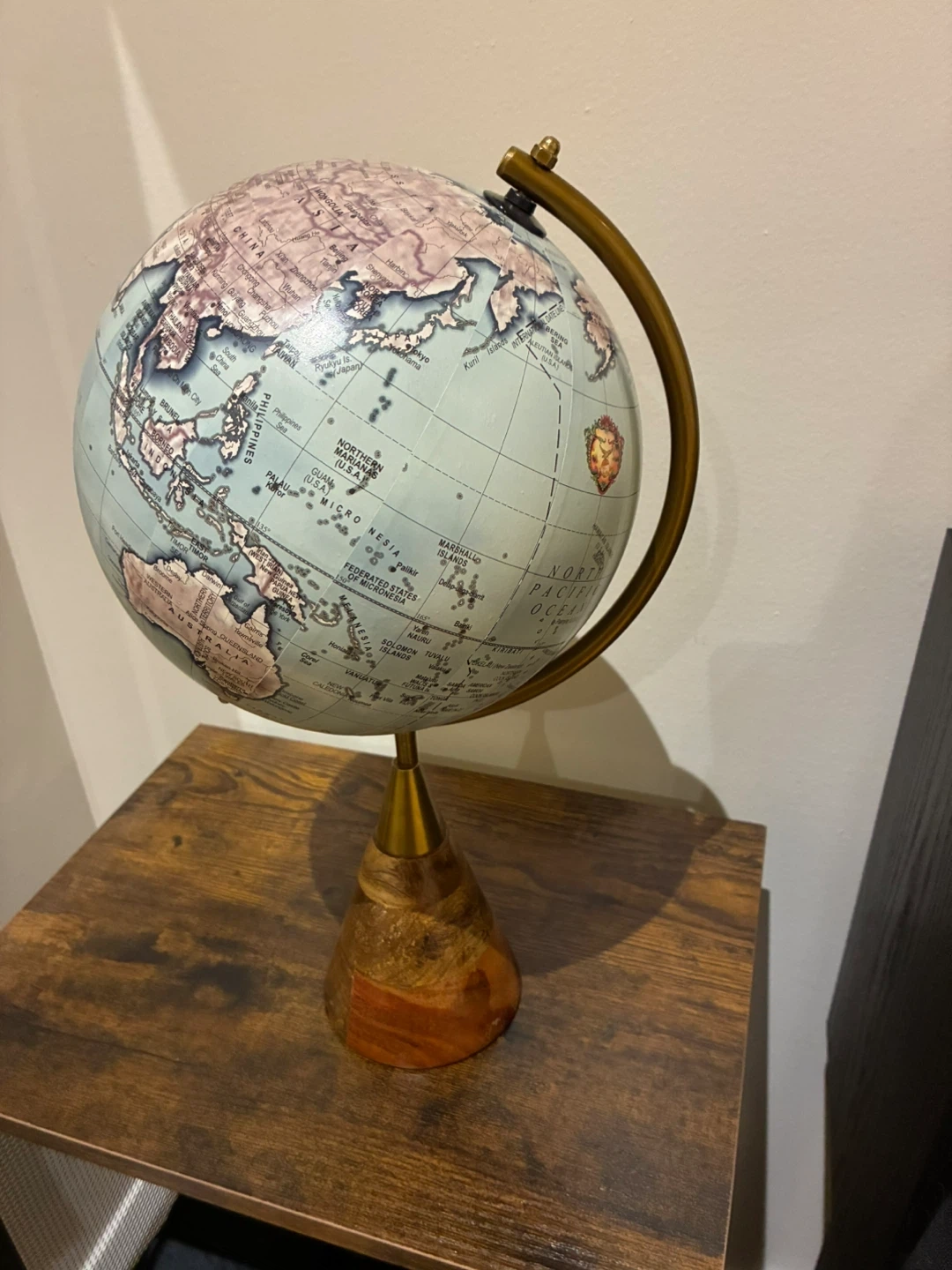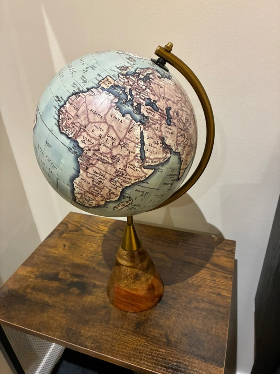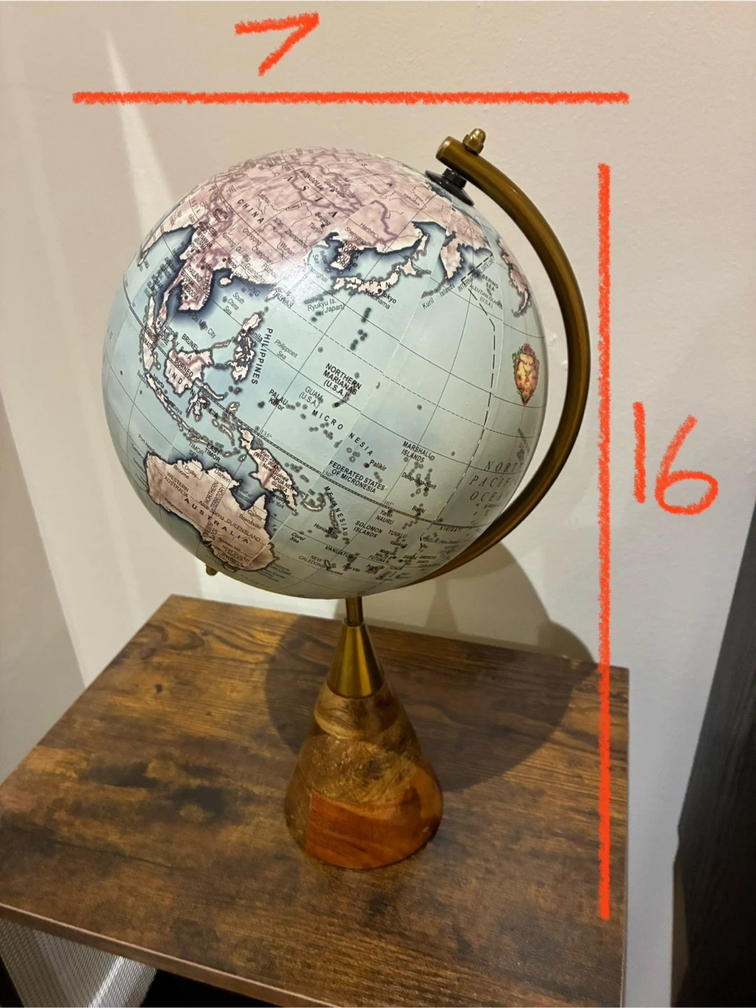 104Here's a decorative globe that would look great in any room! It's about 7 inches in diameter and stands 16 inches tall. It's in great shape and ready for a new home Pickup Bay & Dundas