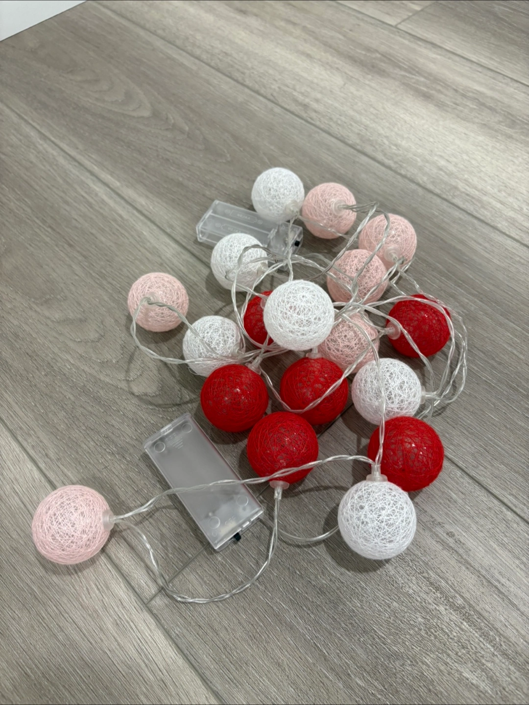 22String lights with colourful spherical bulbs. Features battery pack. You can use them for creating a relaxed atmosphere in your bedroom.