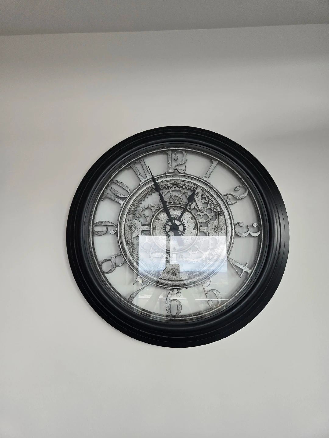 70Selling a decorative wall clock with a black frame. It has a unique gear design in the center and adds a nice touch to any room