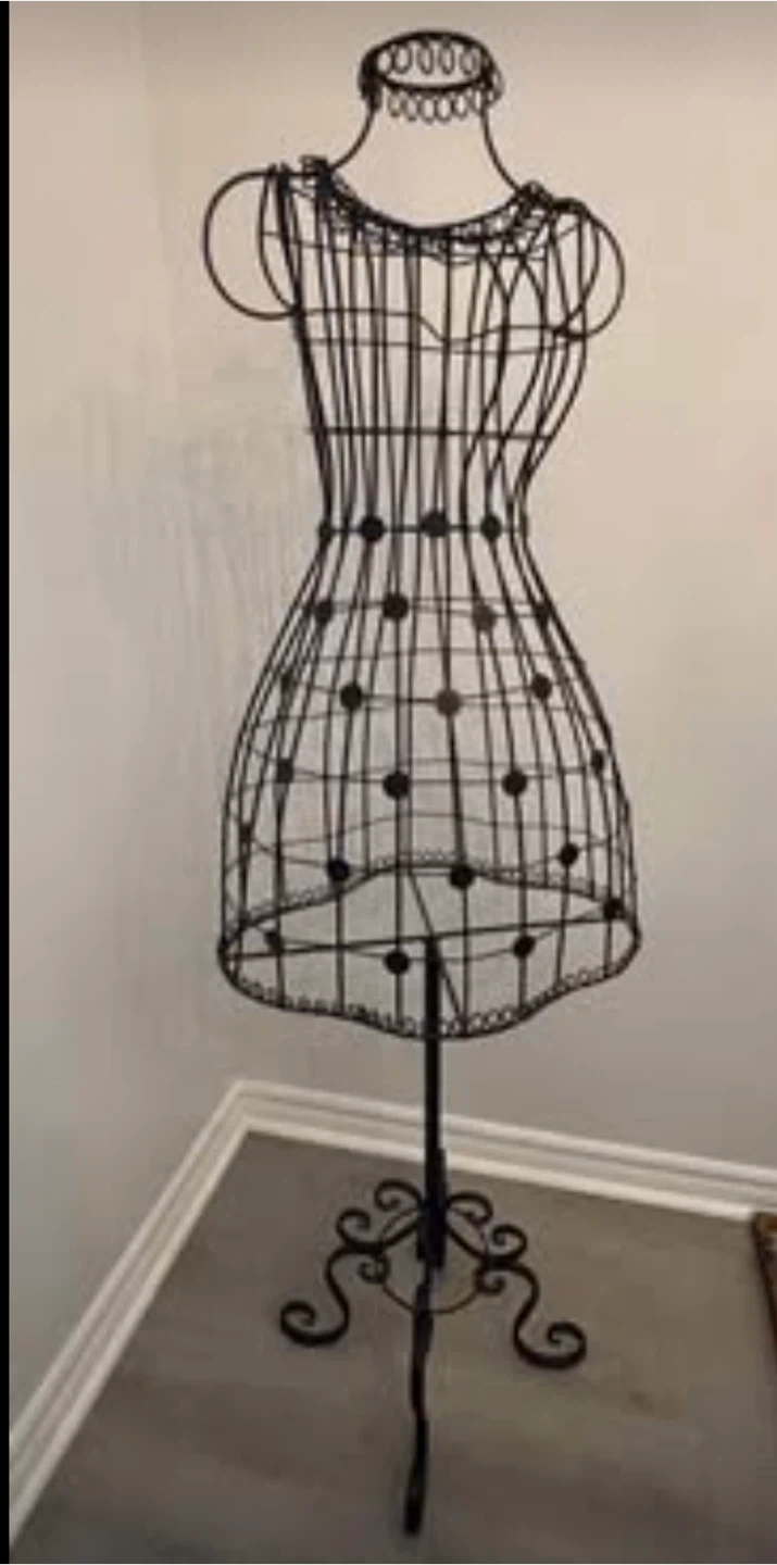 81Here's a decorative wire mannequin dress form, perfect for adding a unique touch to your space! It's in great condition and ready to display your favourite garments or accessories.