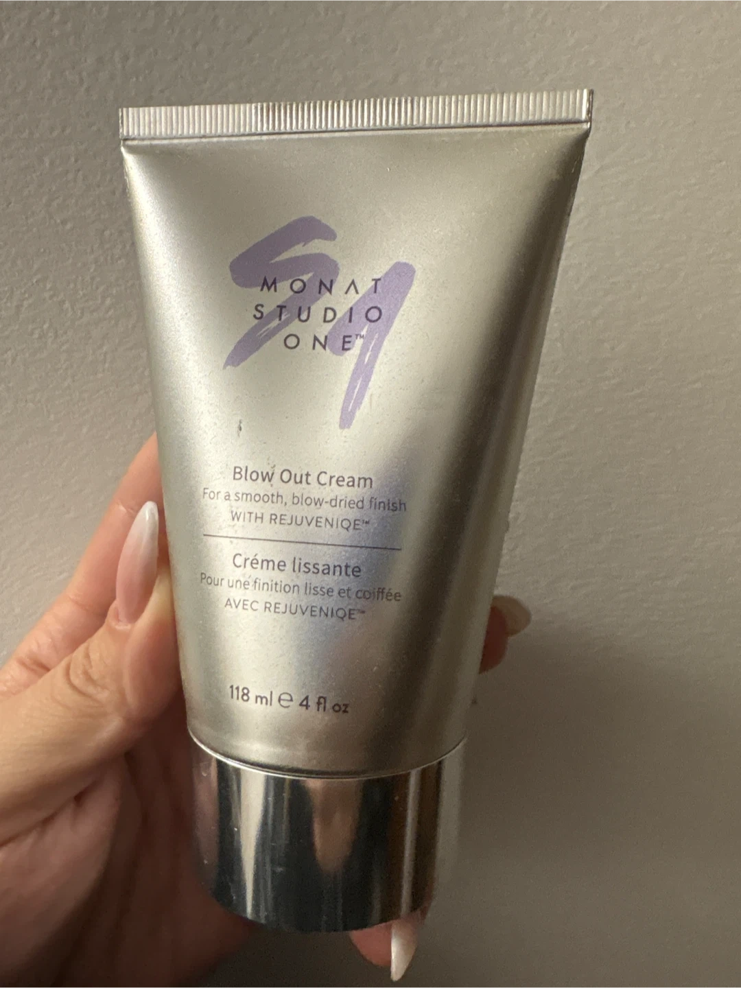 This is MONAT Studio One Blow Out Cream. It's for a smooth, blow-dried finish with Rejuveniqe. 118 ml or 4 fl oz.