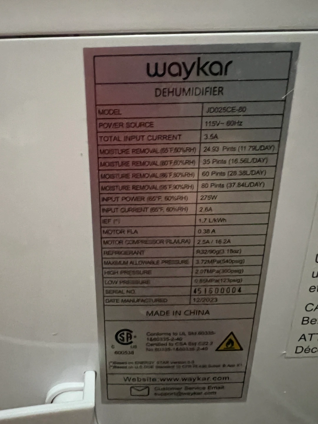 Waykar 80 Pints Energy Star Dehumidifier