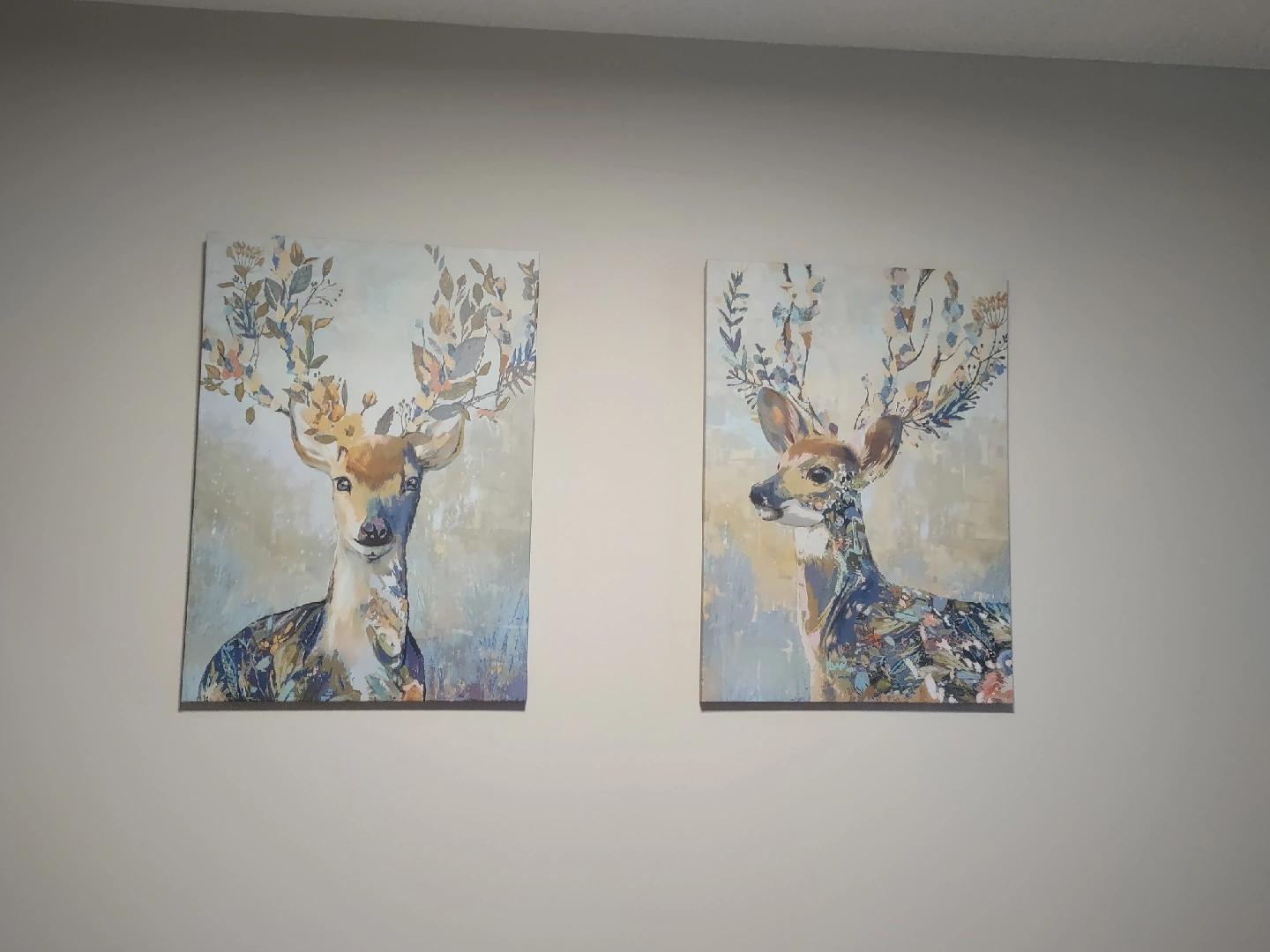 Set of two deer print wall art pieces. They're in great condition and would look lovely in any room of the house!