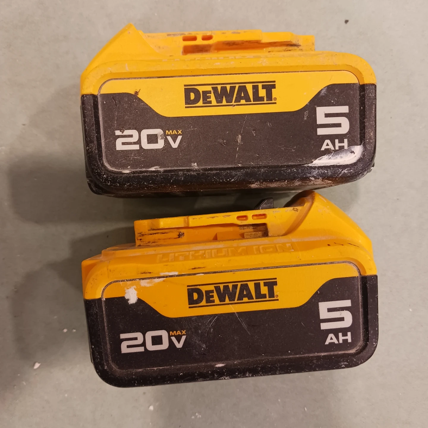Selling two DeWalt 20V MAX 5.0 Ah lithium-ion batteries. These batteries are used but still in good working condition. They're great for powering a variety of DeWalt tools.