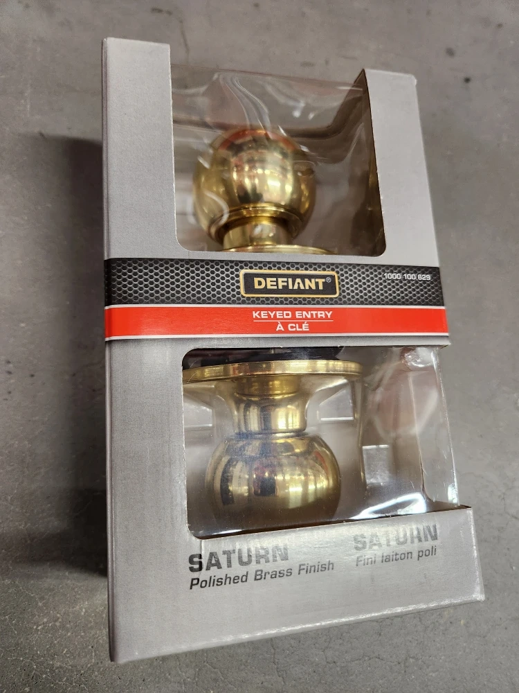 39Selling a brand new Defiant Saturn Keyed Entry doorknob. It has a polished brass finish and is still in its original packaging. Perfect for adding a touch of elegance and security to your home!