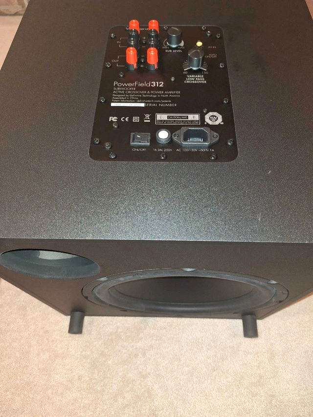 70Used Definitive Technology (PowerField 312) 12" down-facing ported subwoofer. Works and sounds just like original, but has a few very minor scratches and dents caused by a moving company. Asking $210 cash only, please call or text for viewing and pick up in the Markham area.