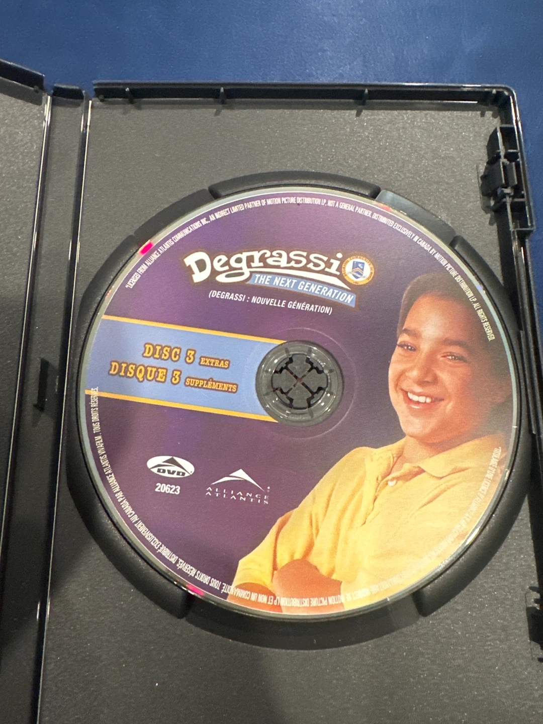 Selling a used DVD of Degrassi: The Next Generation - Extras. Disc 3 is included. Perfect for any Degrassi fan!