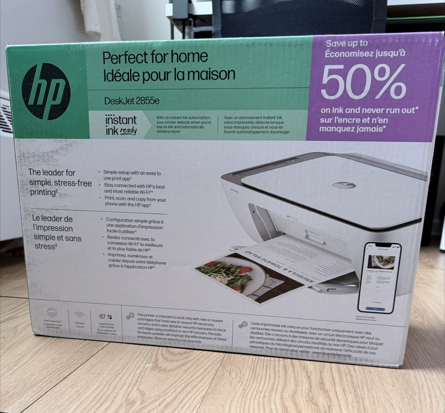 Buy & SellHP DeskJet 2855e All-in-One PrinterHP DeskJet 2855e All-in-One Printer$30HP DeskJet 2855e printer. Includes 3 months of Instant Ink. Brand new in unopened boxConditionNewBrandHPWHERE TO MEETCheck LocationView MapSELLERJaneN St. James Town10412 reviews0 chats·1 favorites·7 viewsSEND CHAT TO SELLERHi Jane! I’m interested in your listing.Hi Jane! I’m interested in your listing.Get the Karrot app to chatSign In to chat