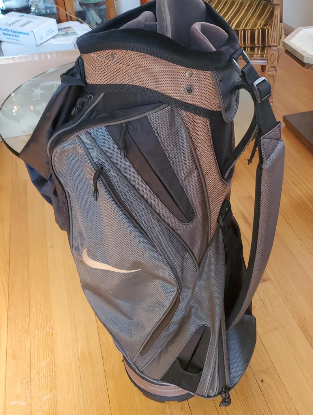 Buy & SellNike Golf BagNike Golf Bag$60This is a Nike golf bag. It's a black and grey stand bag with multiple pockets. Includes a shoulder strap.ConditionLike newWHERE TO MEETJefferson ParkView MapSELLER260277Jefferson Park100 reviews0 chats·0 favorites·4 viewsSEND CHAT TO SELLERHi 260277! I’m interested in your listing.Hi 260277! I’m interested in your listing.Get the Karrot app to chatSign In to chat