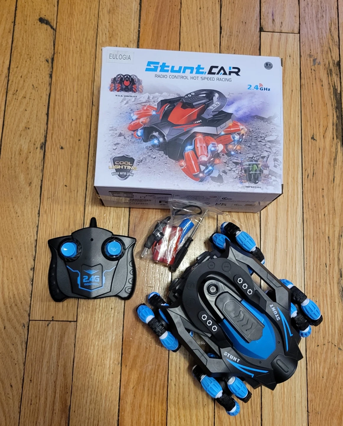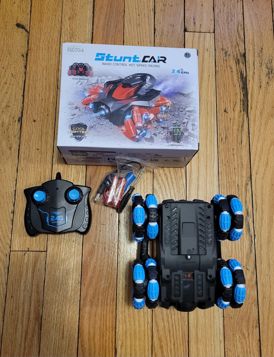 Selling a Eulogia Stunt Car, a radio-controlled hot speed racing car. It comes with the original box and all included components. It's a fun toy for kids 8 and up!