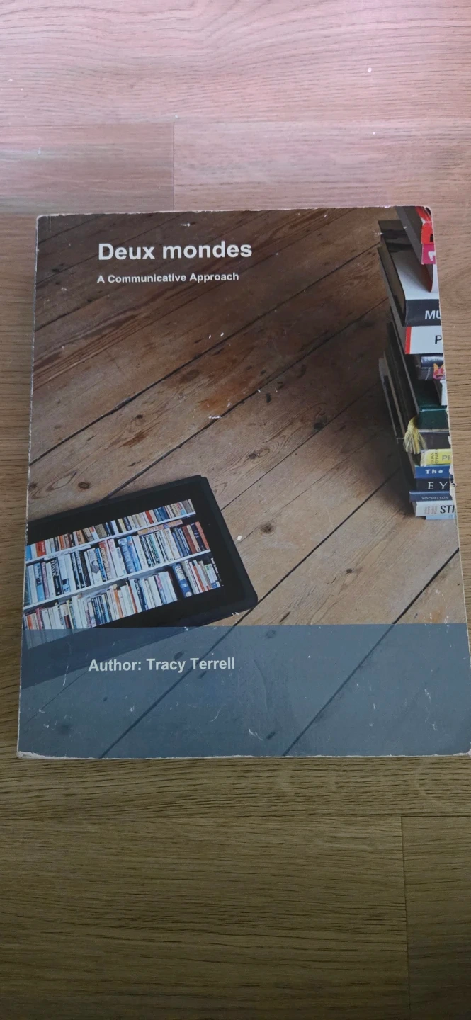 Textbook titled Deux Mondes: A Communicative Approach, written by Tracy Terrell. This is a language learning resource.