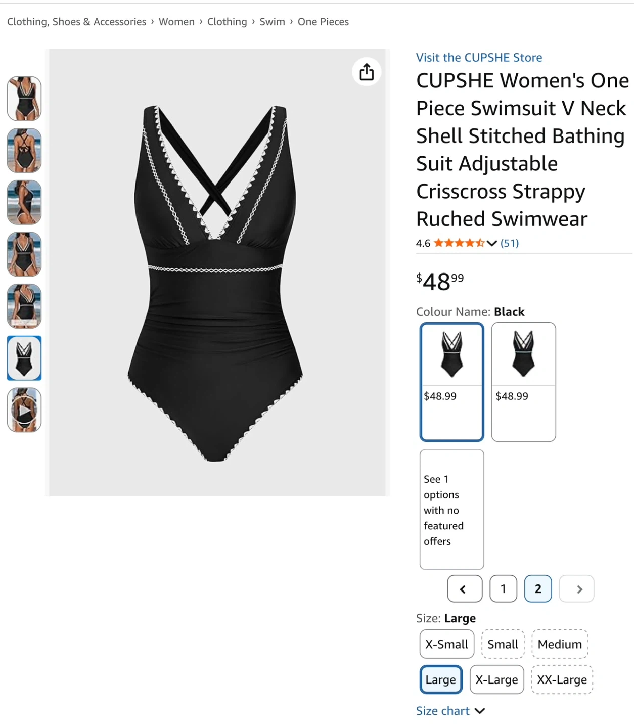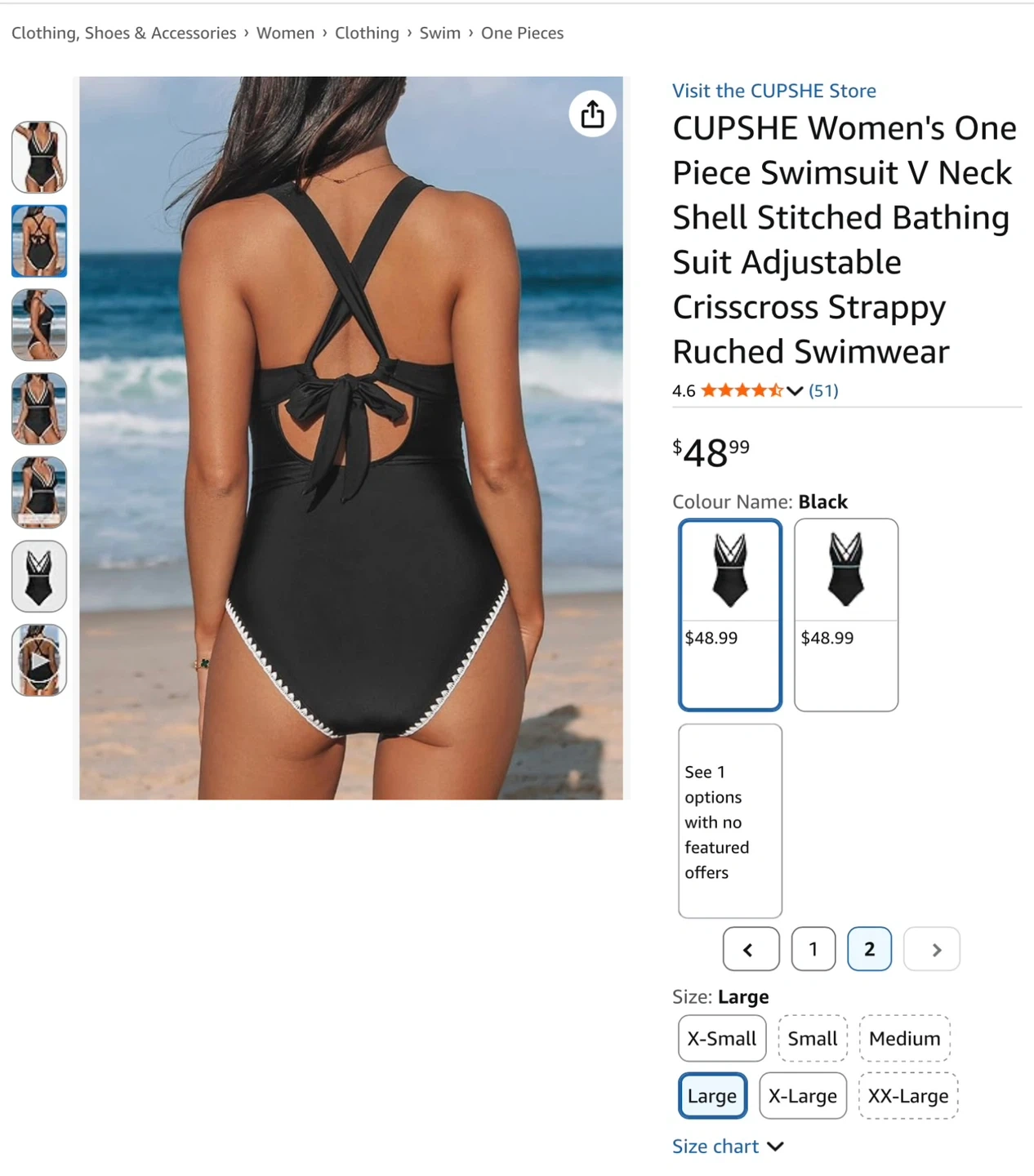 This CUPSHE one-piece swimsuit features a flattering V-neck with shell stitching and adjustable crisscross straps. It's ruched for a comfortable fit. Perfect for your next beach vacation or pool day!