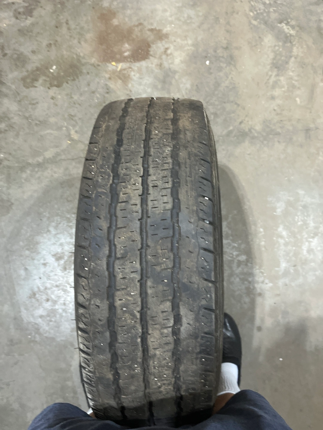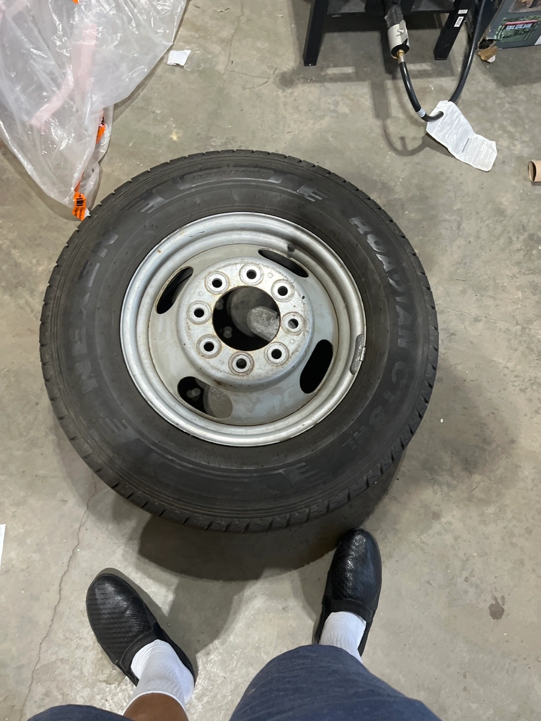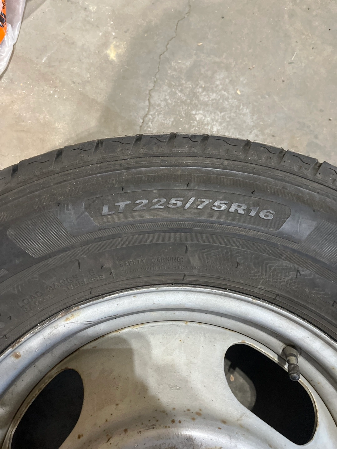 Selling a used tire with the size LT225/75R16. It's in used condition. It comes with the rim. We can discuss negotiations.