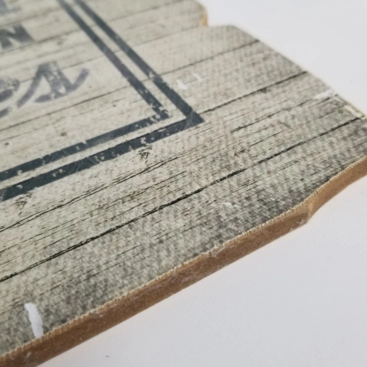 •one piece plank; the front is painted in a distressed look with shiplap lines