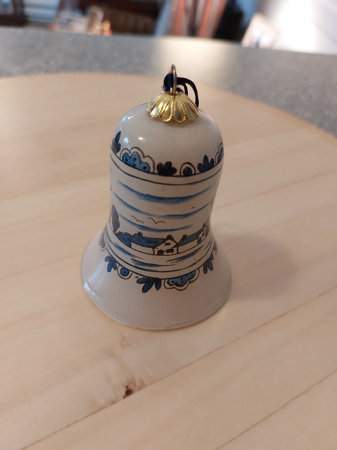 Delft Blue Windmill Bell Ornament in Box