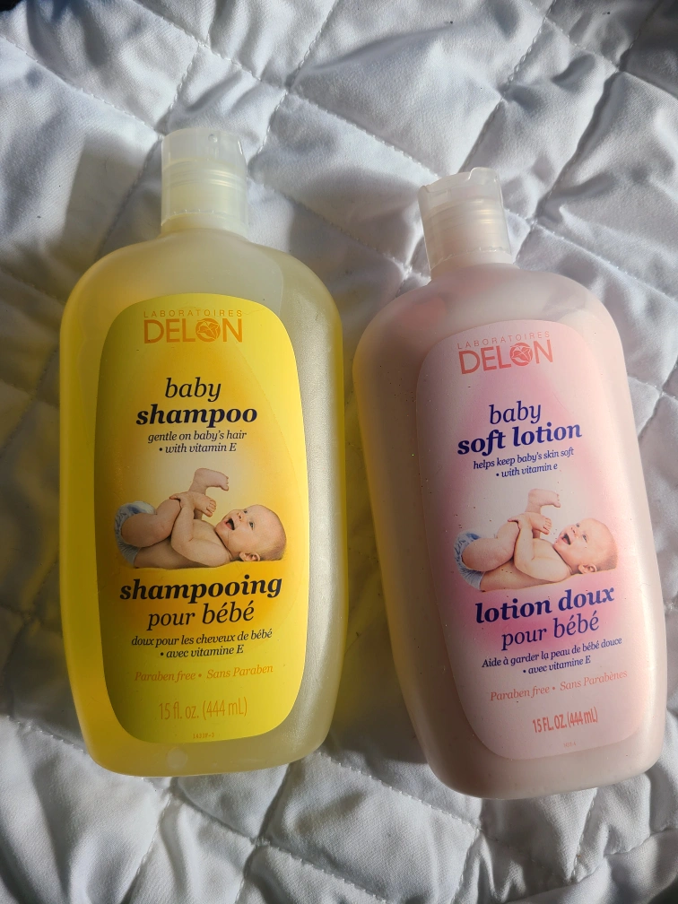 304Selling a set of Delon baby shampoo and soft lotion! Both are gentle on baby's skin and hair, and are paraben-free.