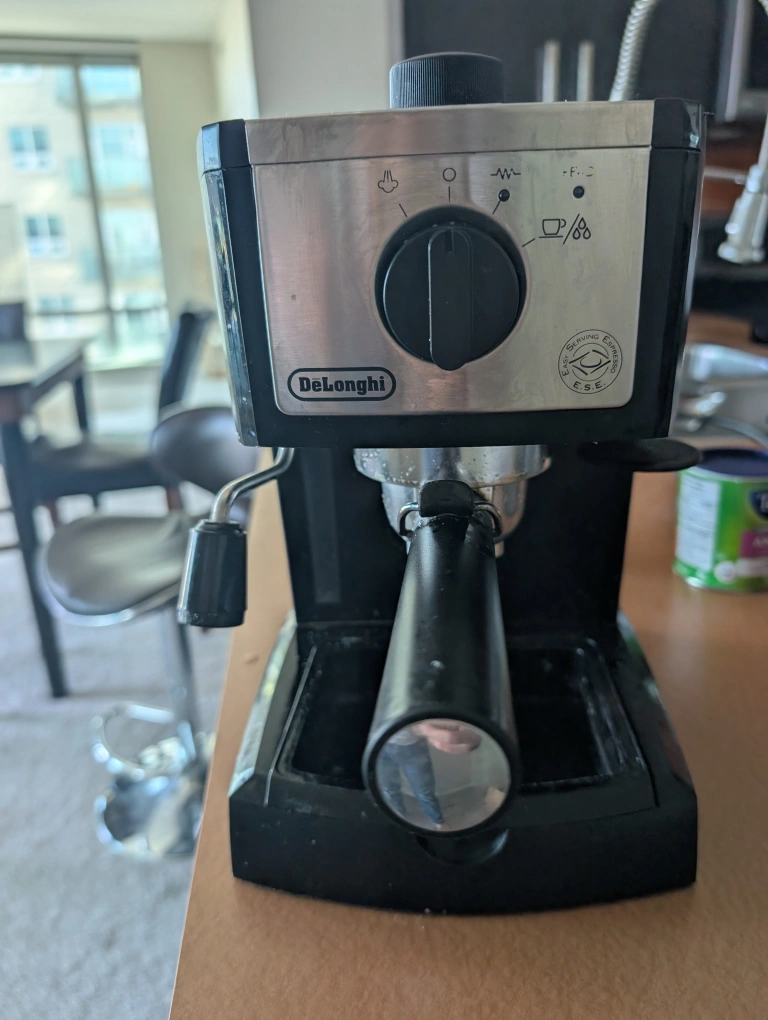 Selling a DeLonghi espresso machine. It's in good working condition and ready to make some delicious coffee!