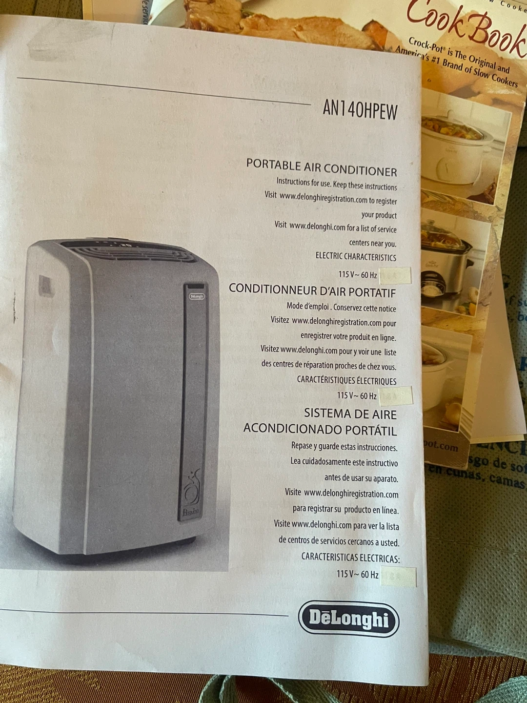 Selling a DeLonghi portable air conditioner, model PAC AN140HPEW. It's energy efficient with eco R410A. Operates at 115V-60Hz and has a cooling capacity of 4100W (14000 BTU/h).