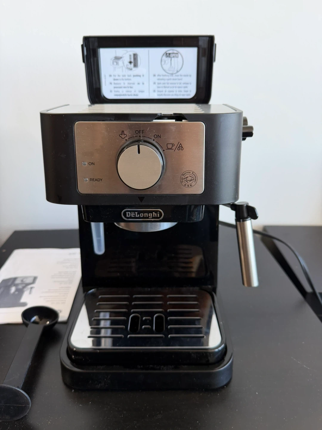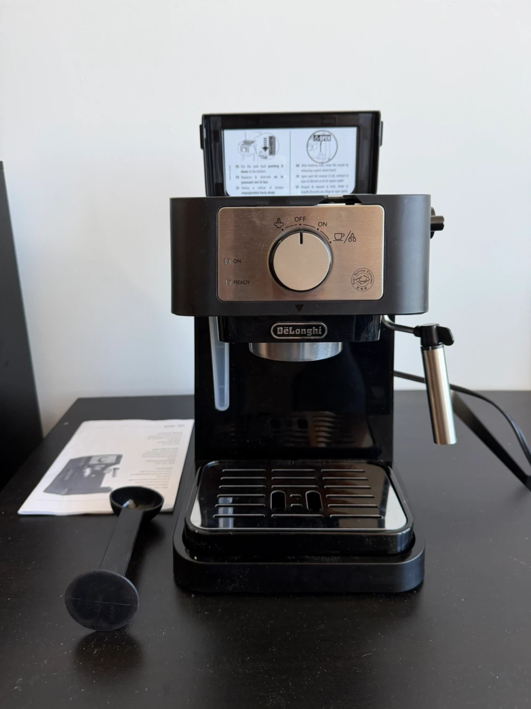 DeLonghi Stilosa EC230 Pump Espresso Machine – Manual, Black/Stainless Pickup Location: Downtown Toronto (near Eaton Centre) Included in Package: - DeLonghi EC230 espresso machine - Scoop/tamper tool - Instruction manual - Drip tray & water reservoir Missing the Portafilter and filter baskets Retail price: $129+ taxes