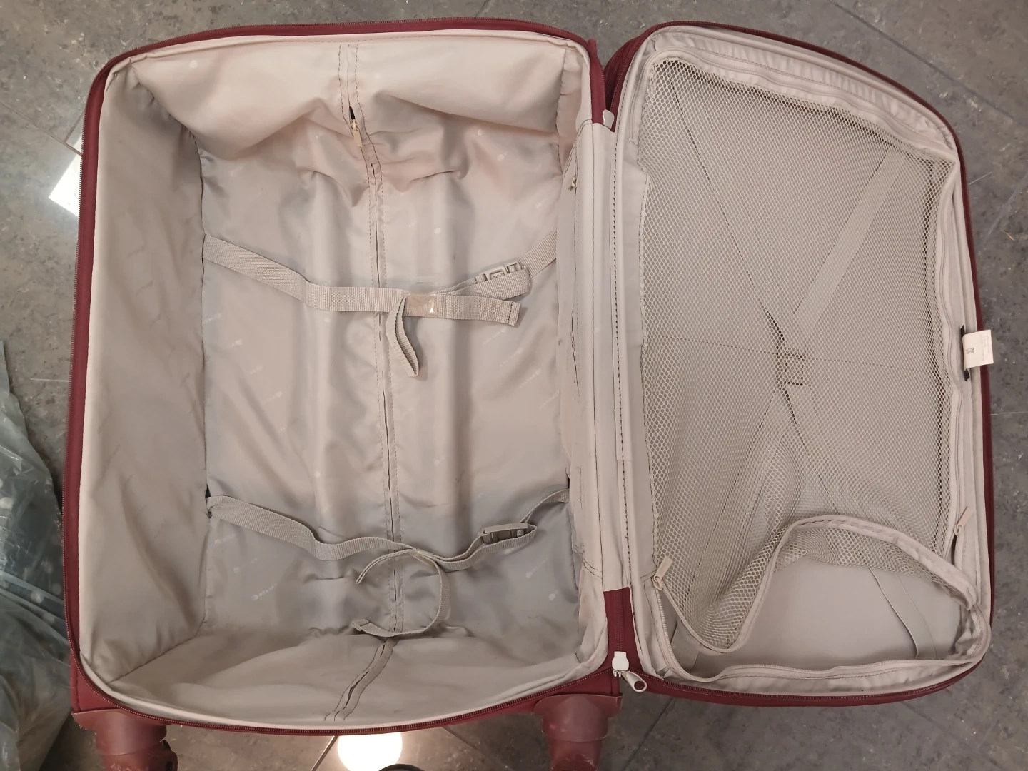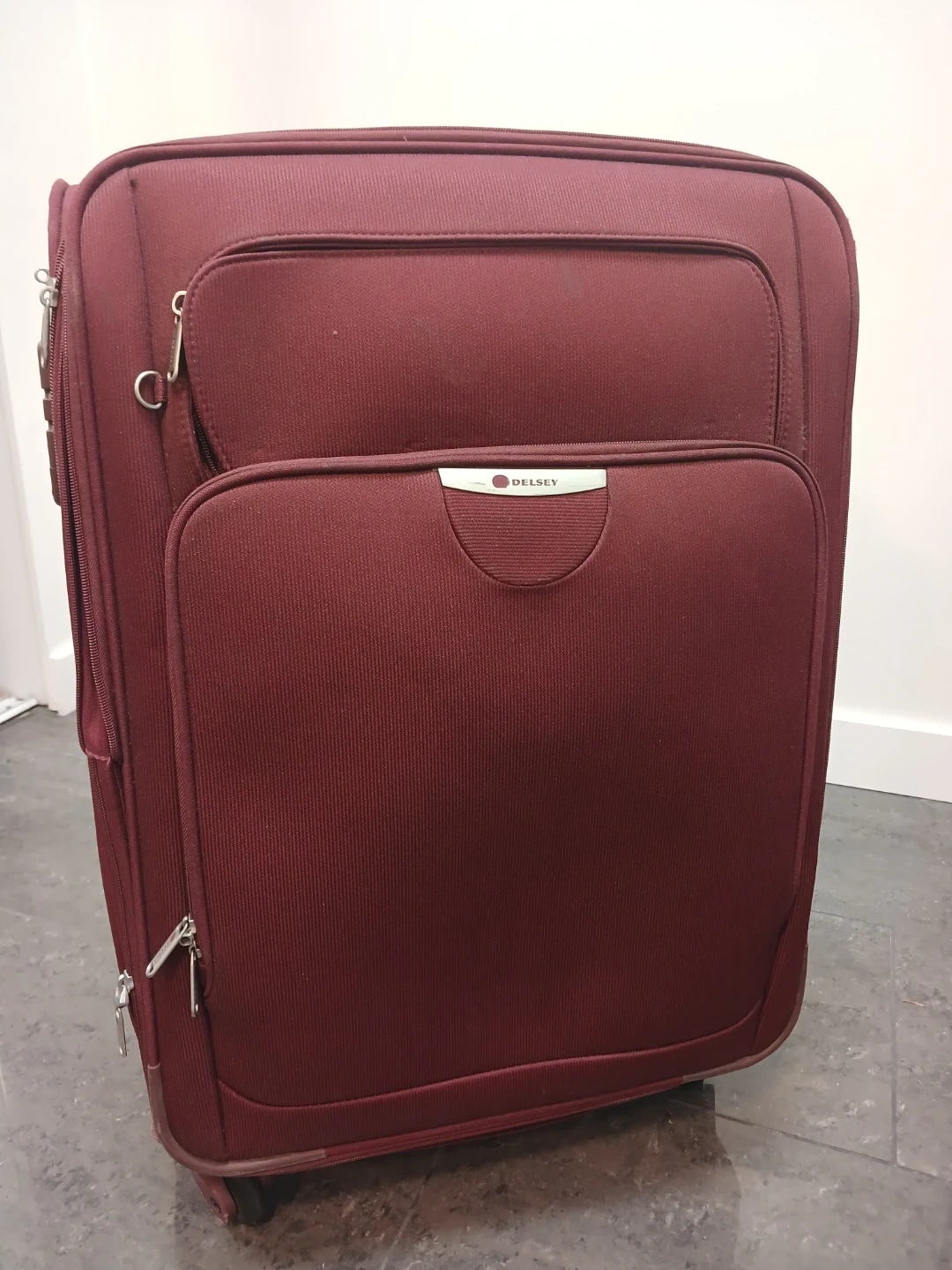 43Selling a Delsey carry-on suitcase in burgundy. It's in great condition and ready for your next trip! Perfect size for fitting in the overhead compartment on flights
