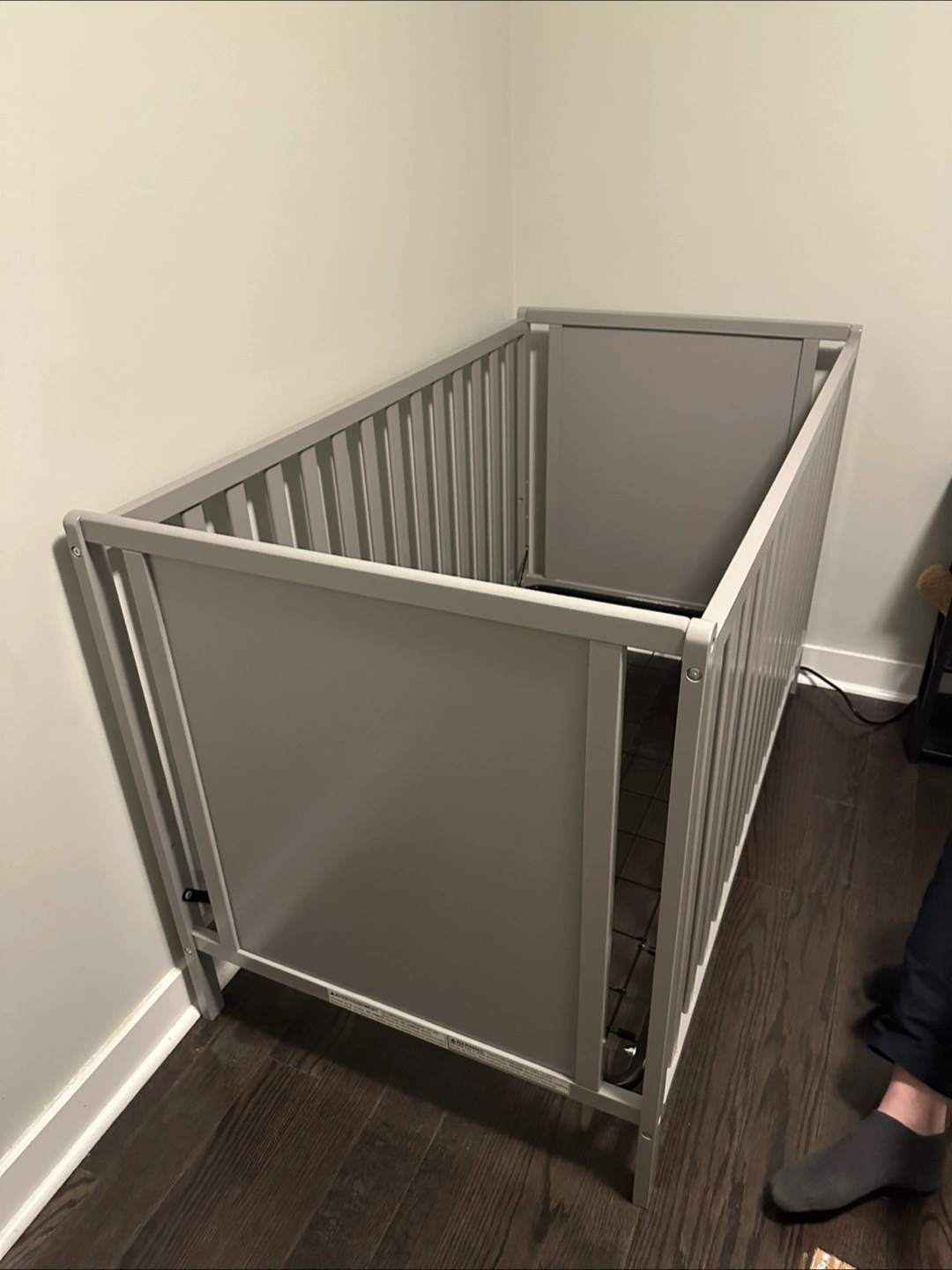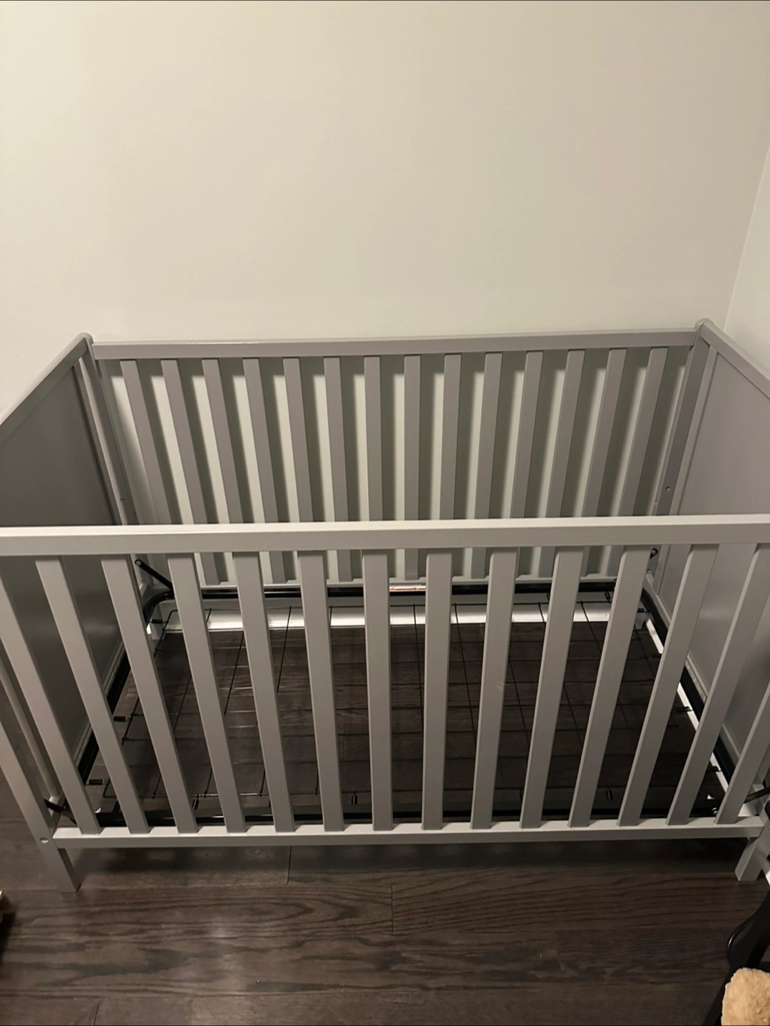 IKEA SNIGLAR Crib, mattress, protector and bedsheets