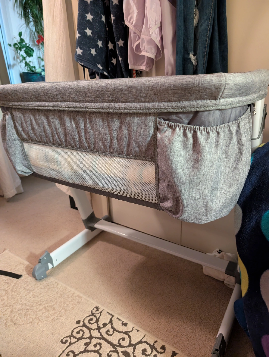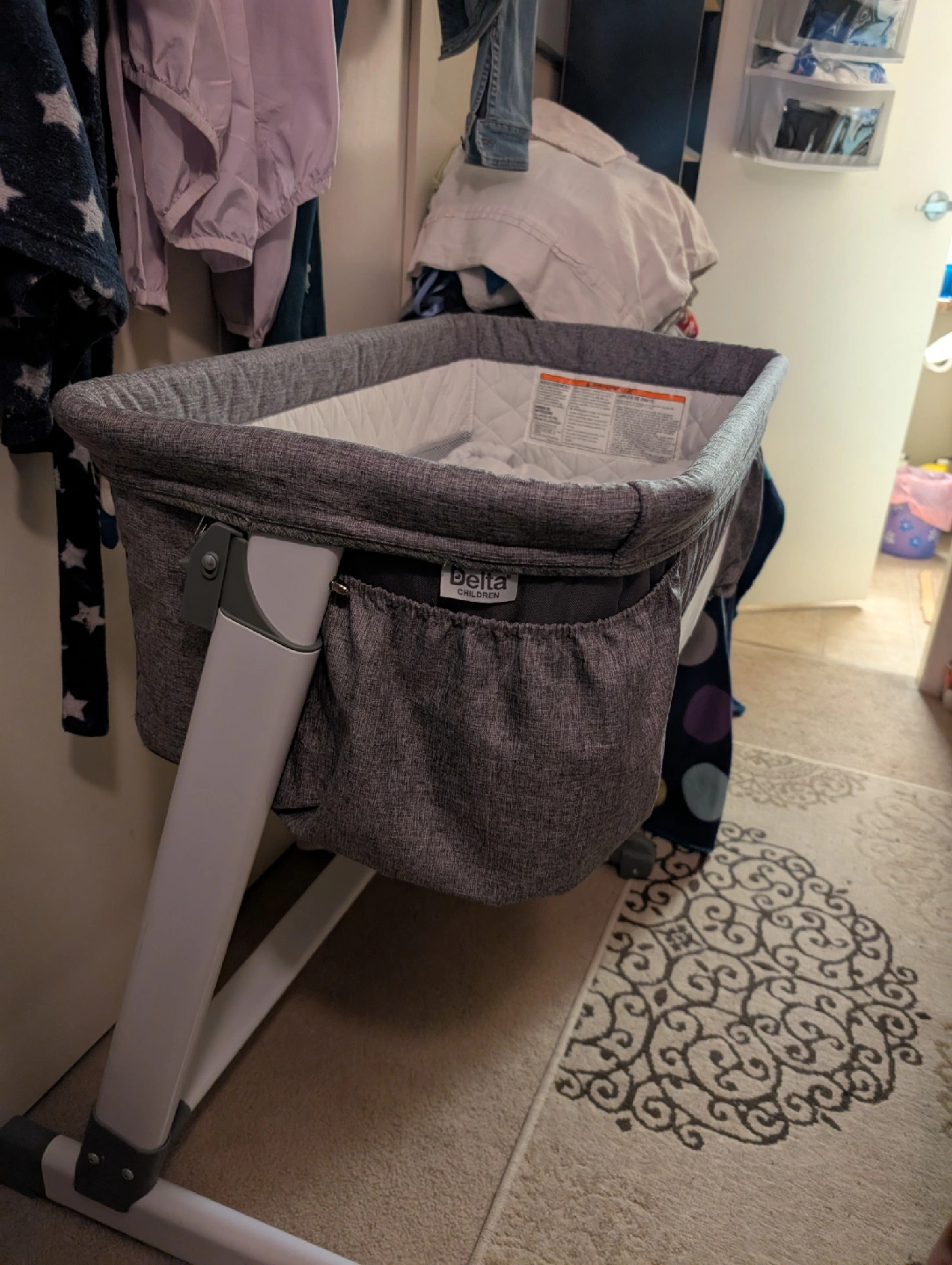 Selling a Delta Children Sweet Beginnings Bassinet in great condition! It's a cozy and convenient sleeping space for your little one. The bassinet features a sturdy frame and breathable mesh sides for added safety. It also has a storage pocket for keeping essentials close by. Perfect for newborns!