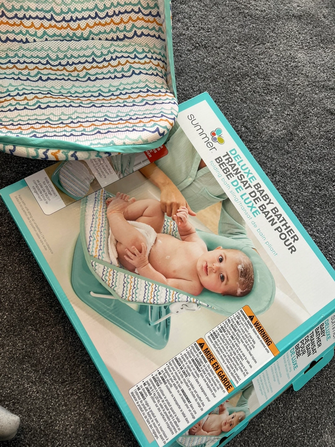 Selling a Summer Deluxe Baby Bather in excellent condition! This folding bath seat is perfect for bathing your little one safely and comfortably. It has 3 reclining positions so you can adjust it as your baby grows. Folds up so it’s easy to store.