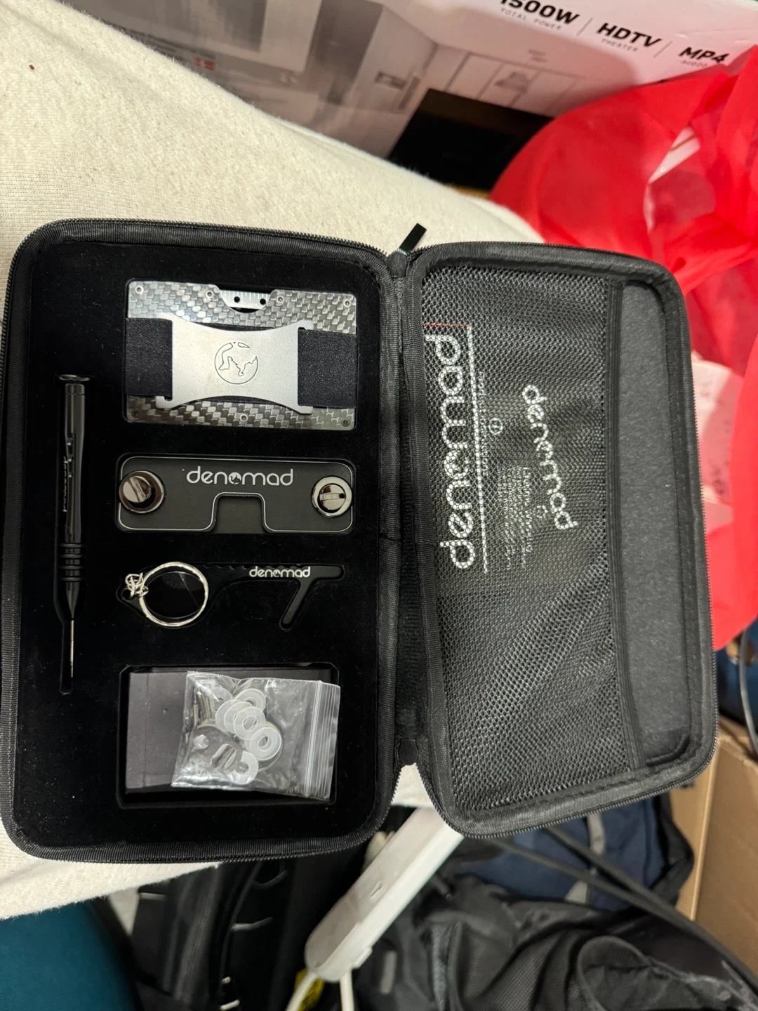 51Selling a Denemad wallet that comes with its original case and all the accessories! The set includes the wallet itself, a tool for adjustments, extra screws, and a keyring. Everything is in great condition and ready for a new owner